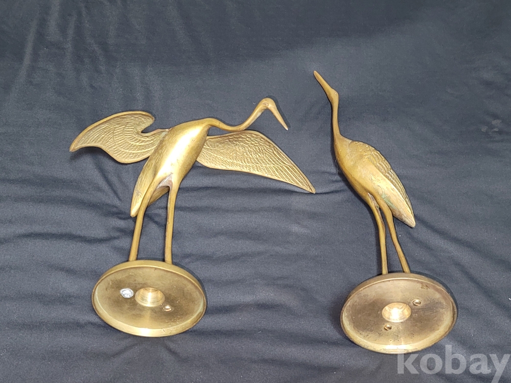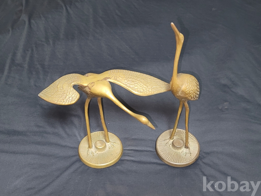빈티지 멋스럽고 묵직한 갓 위에 있는 두루미 2종 일괄입니다.