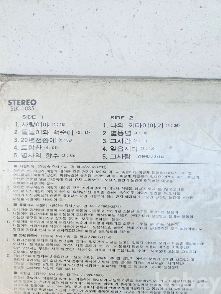 | 자켓상태 | EX : 약간의 마모, 모서리 찢김 존재 | 음반상태 | NM : 개봉했으나 미사용급, 스크래치 없음 | 발매정보 | 초반 | 가사지여부 | 무 |