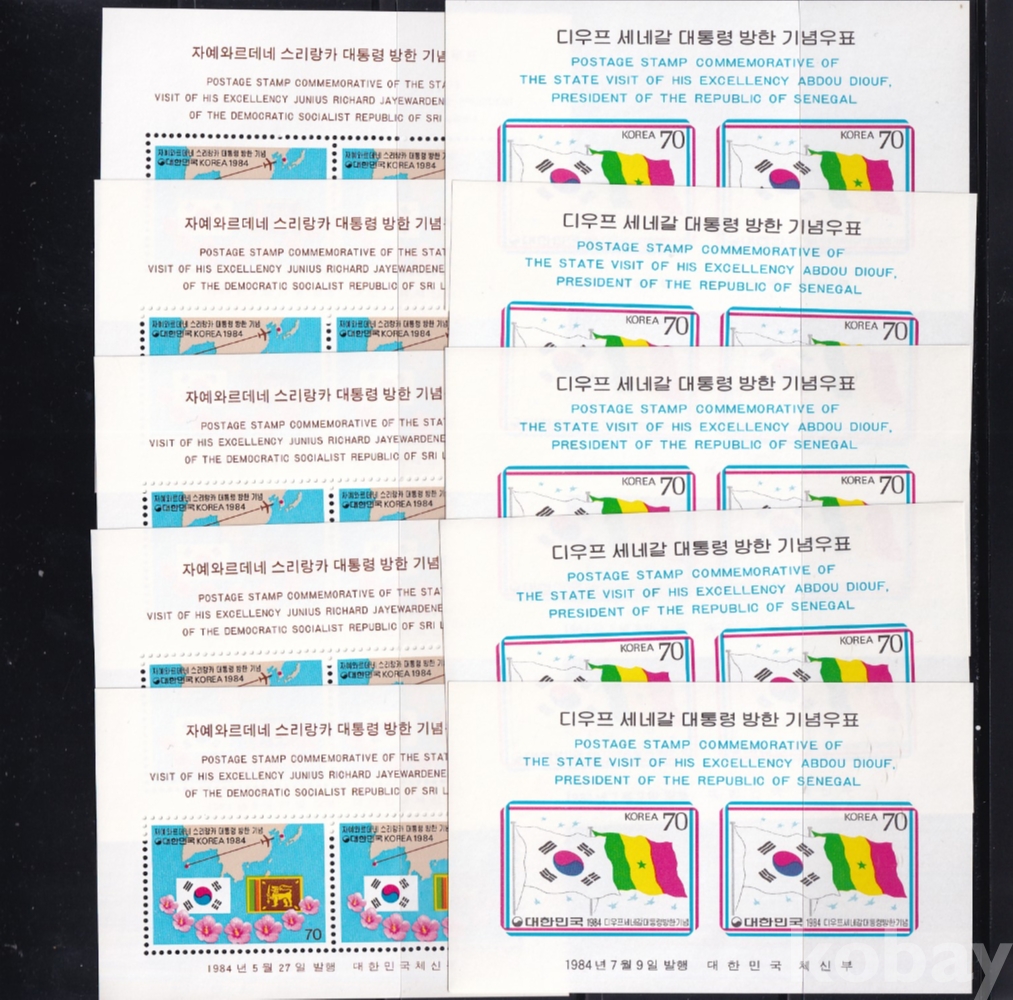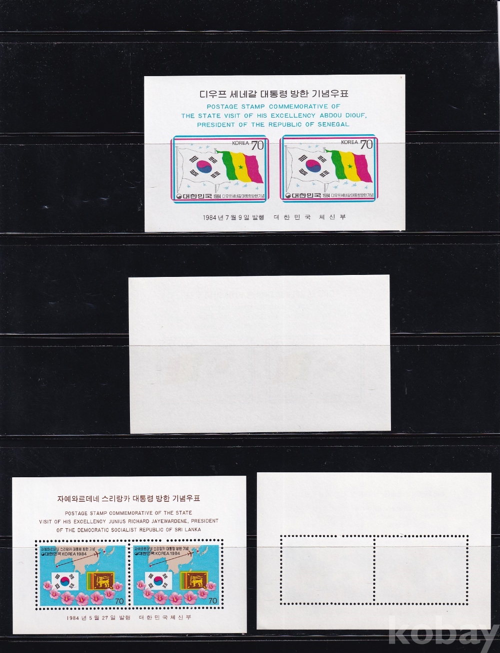 - 미사용 1984년 전두환 대통령 방문 기념 시트 2종 모음 / 자예와르데네스 스리랑카, 디우프 세네갈