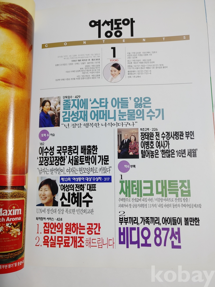★천원출발★ L-11-053 여성동아 1996년 1월호 잡지 책(5권이상 묶음배송불가)