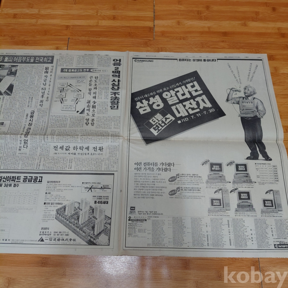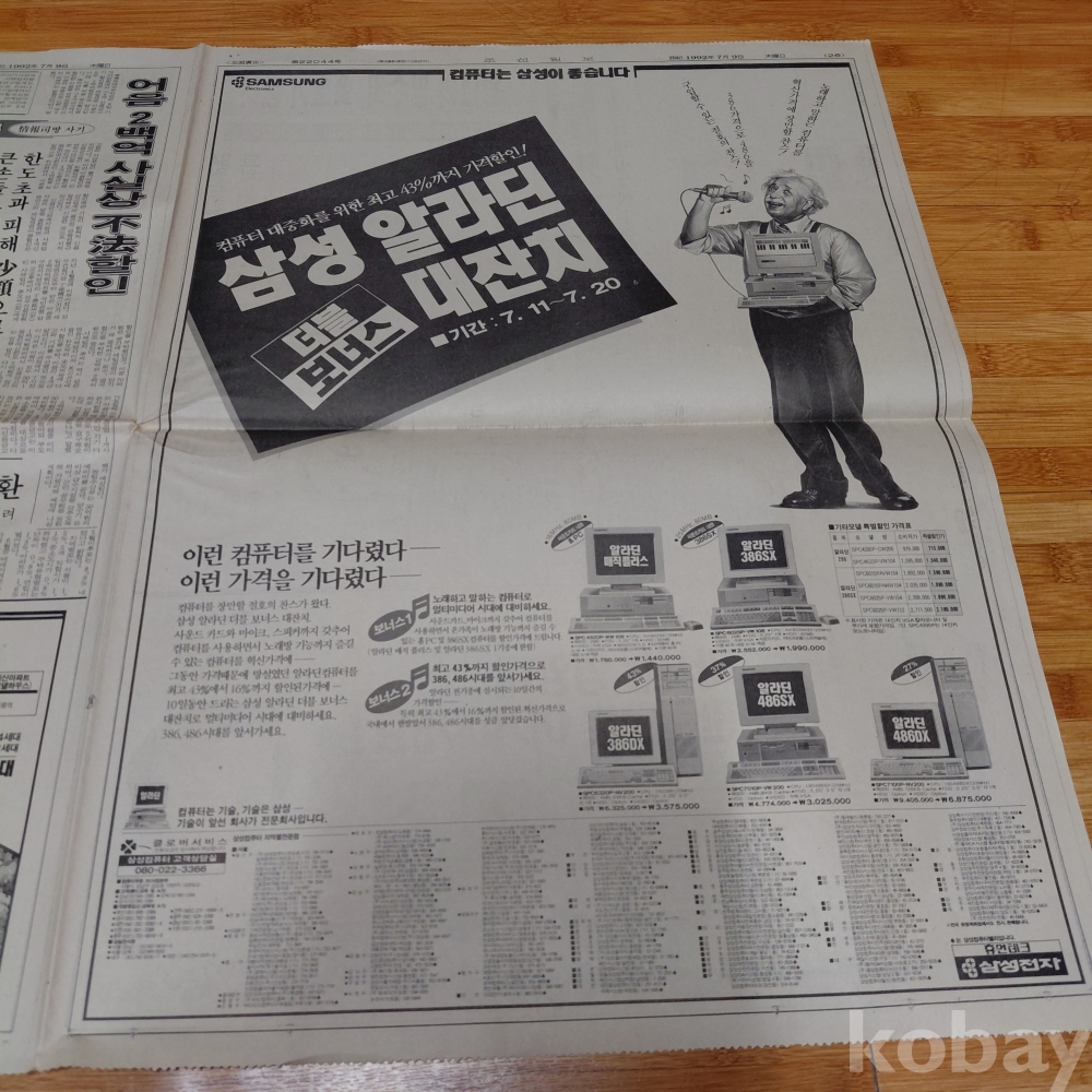 삼성전자 삼성 알라딘 컴퓨터 광고 조선일보 92년7월9일 올려드립니다