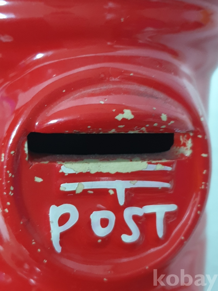 {천원경매} 11-2008 빨간색 우체통 저금통(10.5*17.5, 벗겨진 부분 있음, 밑 뚜껑 없음)