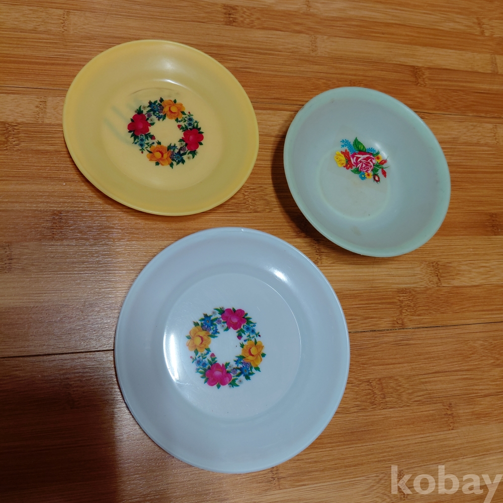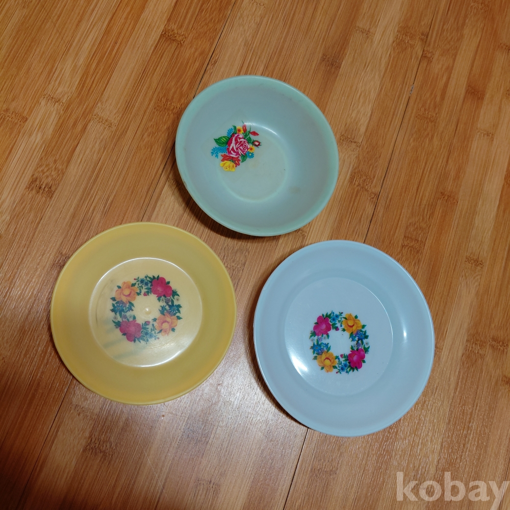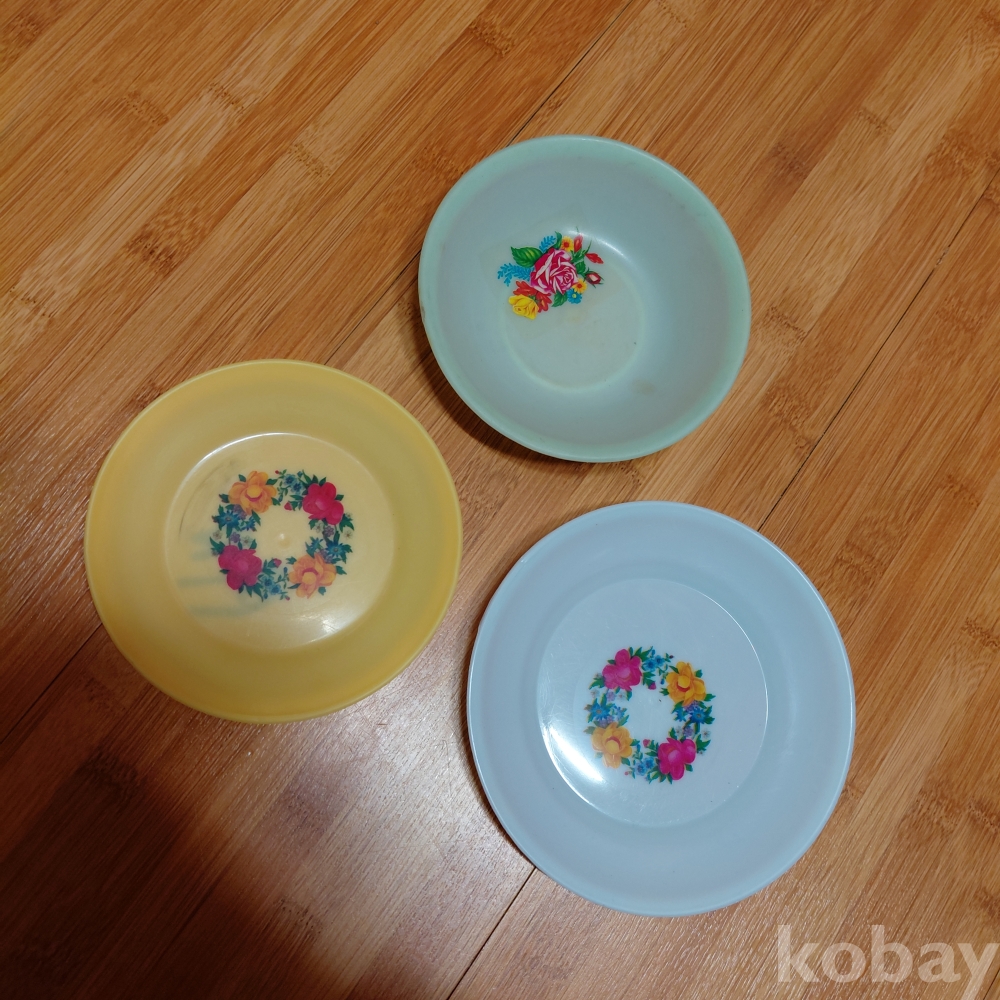 70ㅡ80년대 프라스틱 꽃무늬 그림 접시 세점일괄 올려드립니다