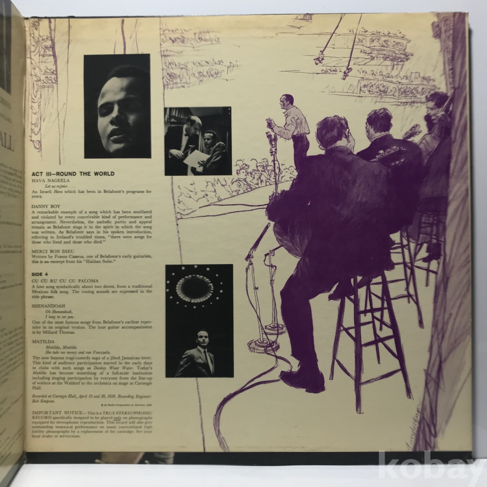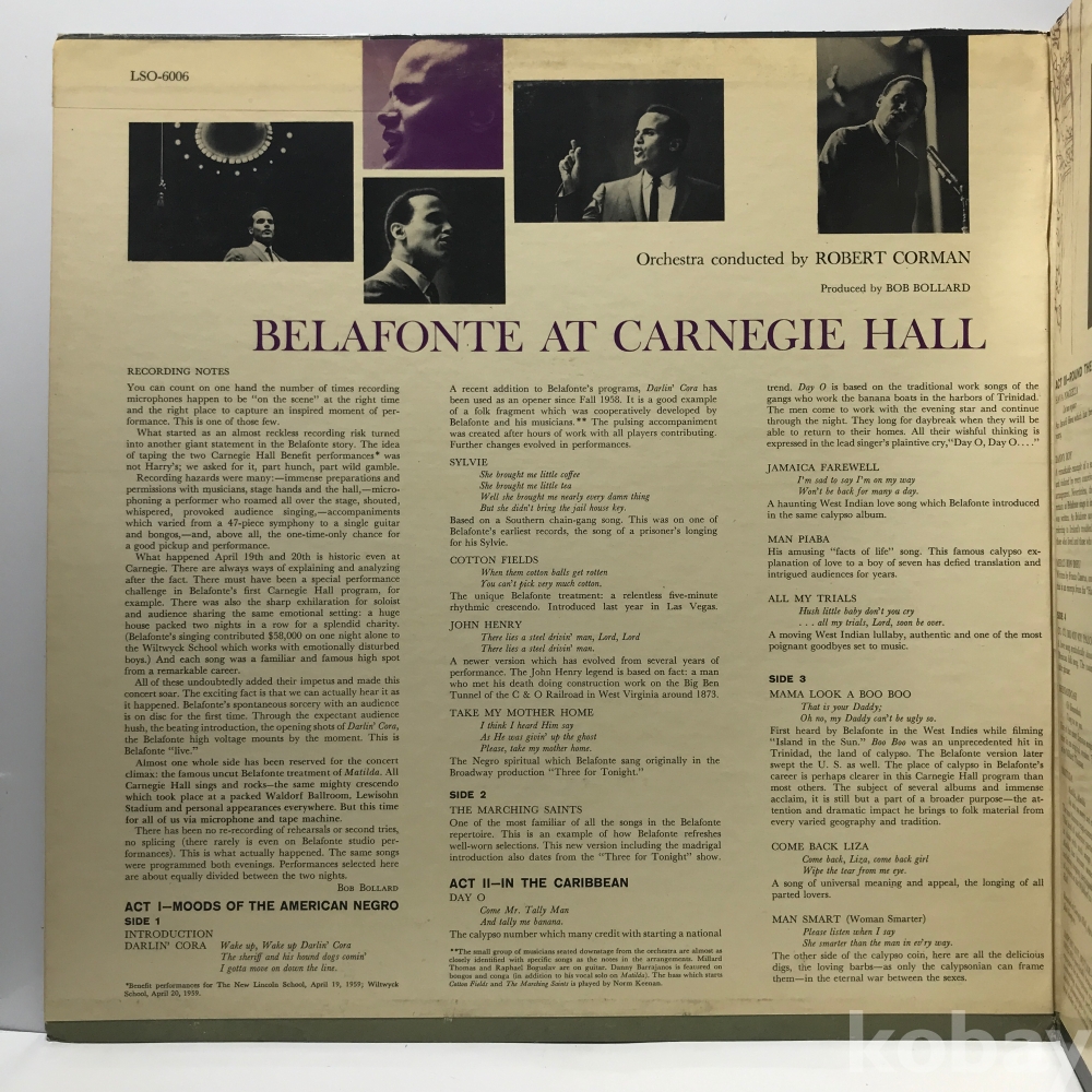 LP 36,650-13 Belafonte At Carnegie Hall 2LP . 수입 자켓 EX- 알판 EX