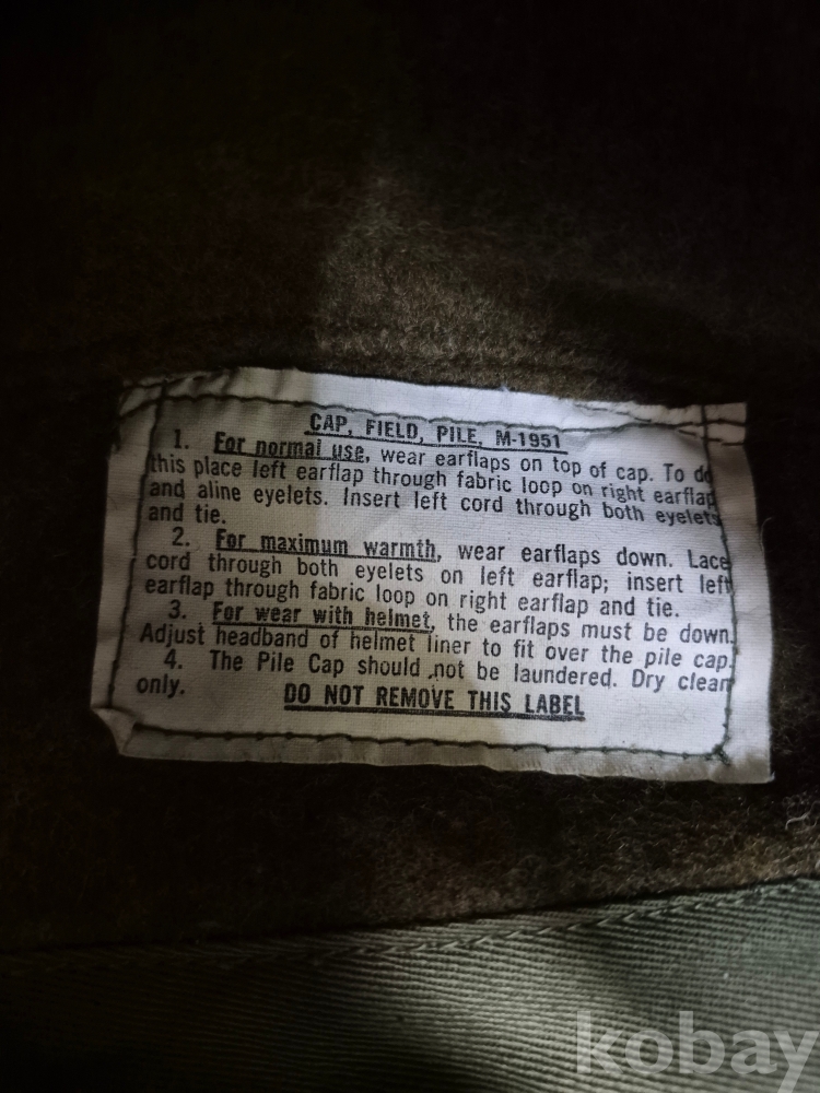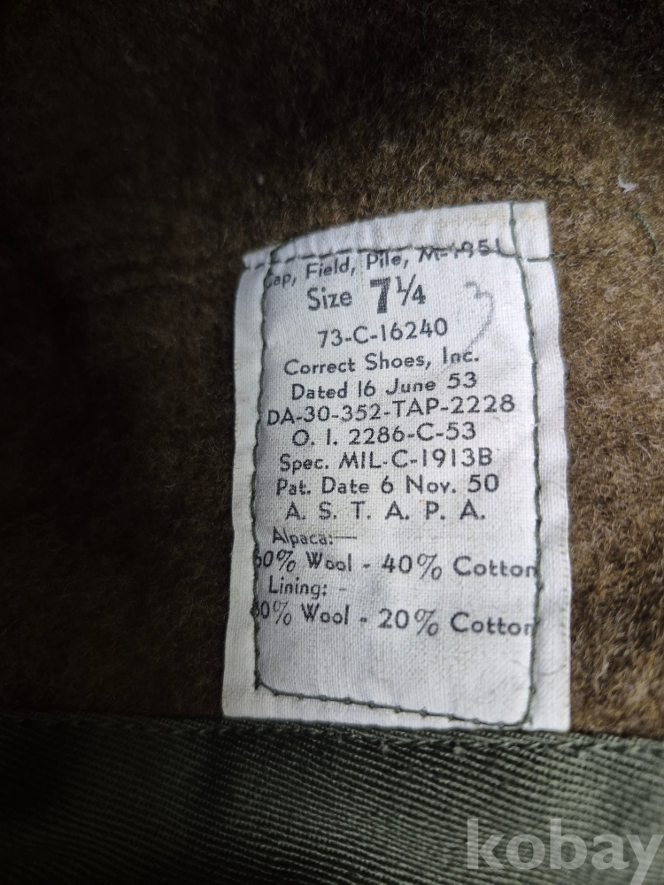 미 육군 m-1951 파일드 캡 미사용품 으로 추정 한국 전쟁당시 미군이 헬멧안에 착용할수 있도록 제작 17*20*39