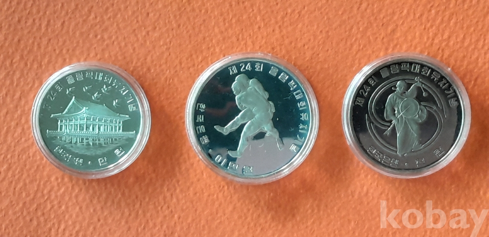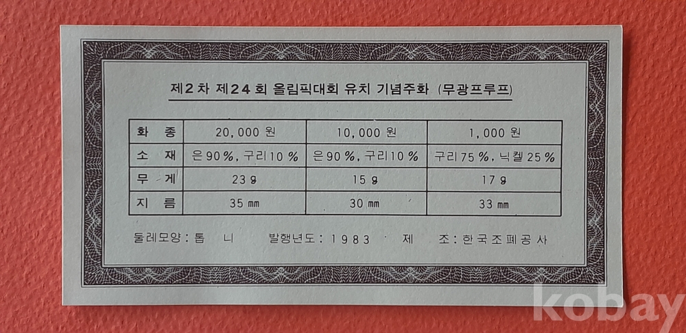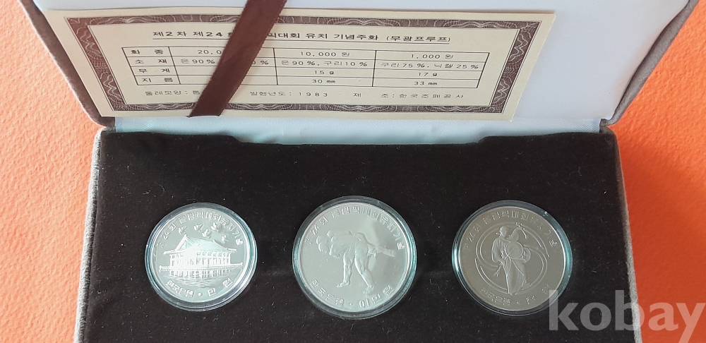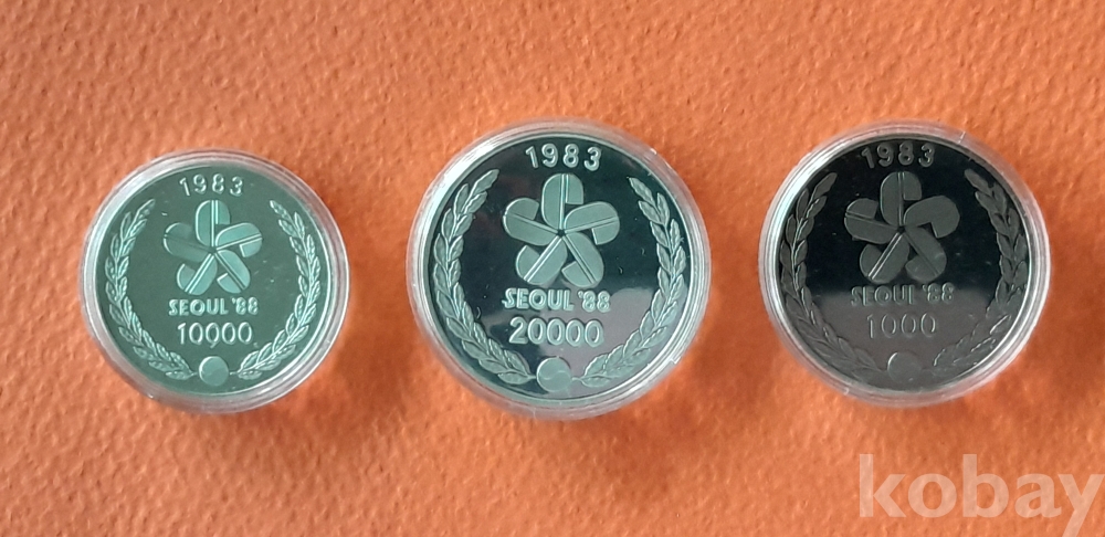 1983년 발행한 제2차 제24회 올림픽대회 유치 무광프루프 기념주화 3종 세트 입니다.