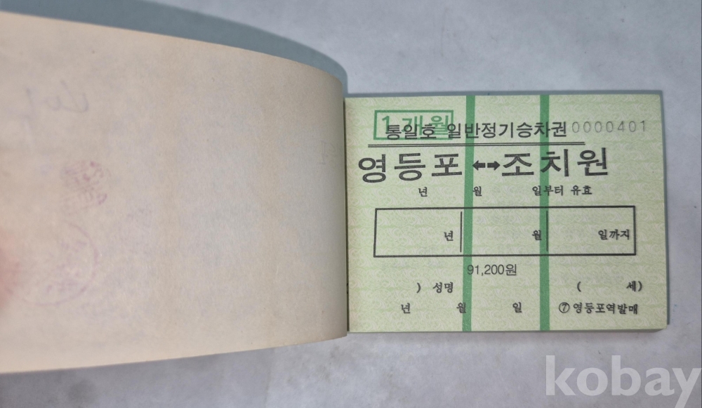 '통일호' 영등포~조치원 일반 정기승차권 미사용 100매 다발입니다.