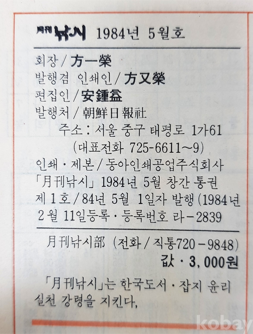 [창간호] 月刊 낚시*조선일보사,1984년,244쪽