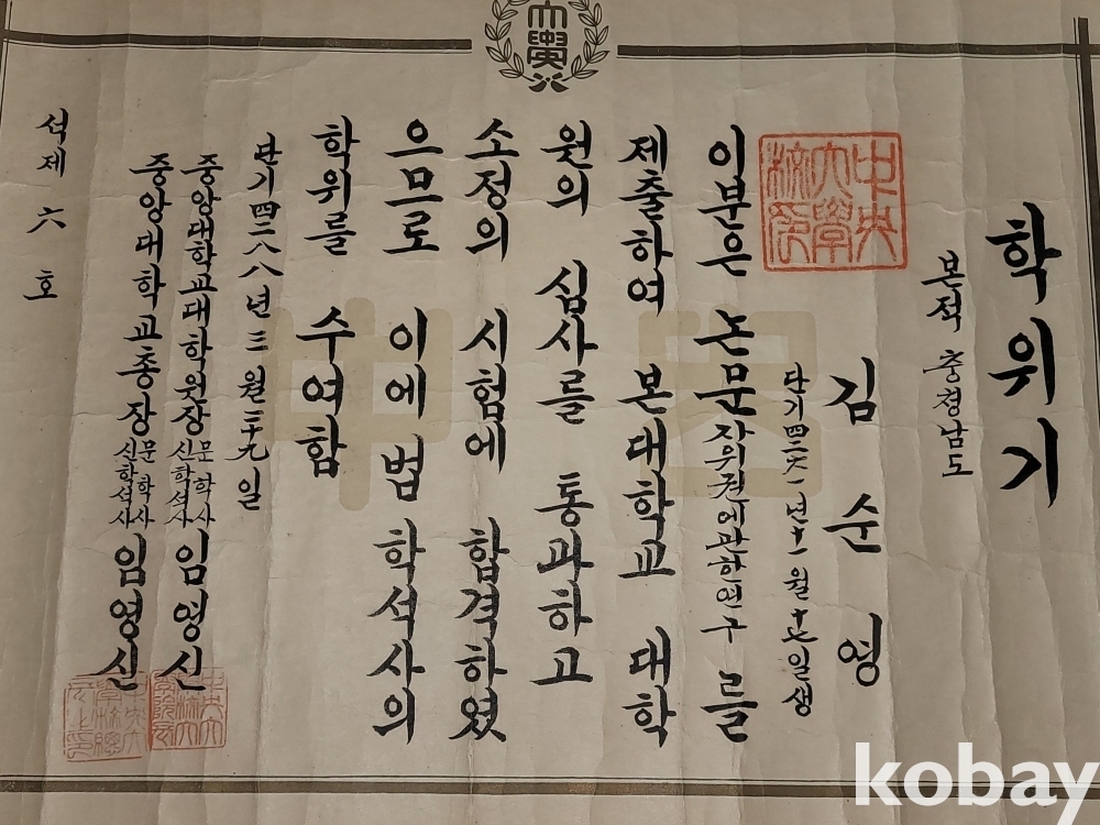 빈티지 세월 감이 느껴지는 희귀한 1955년 중앙대학교 학위기 증서입니다.