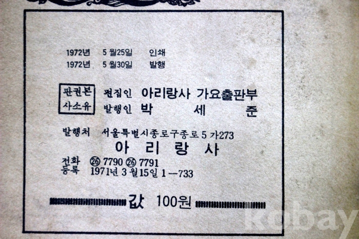 (노래책) 노래의 하모니 - 1972년 / 아리랑사 발행