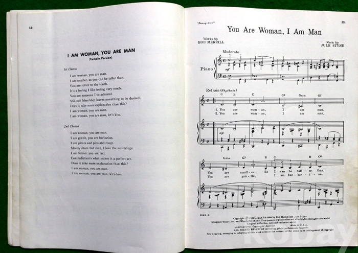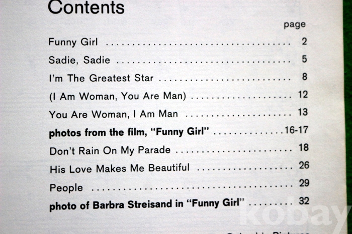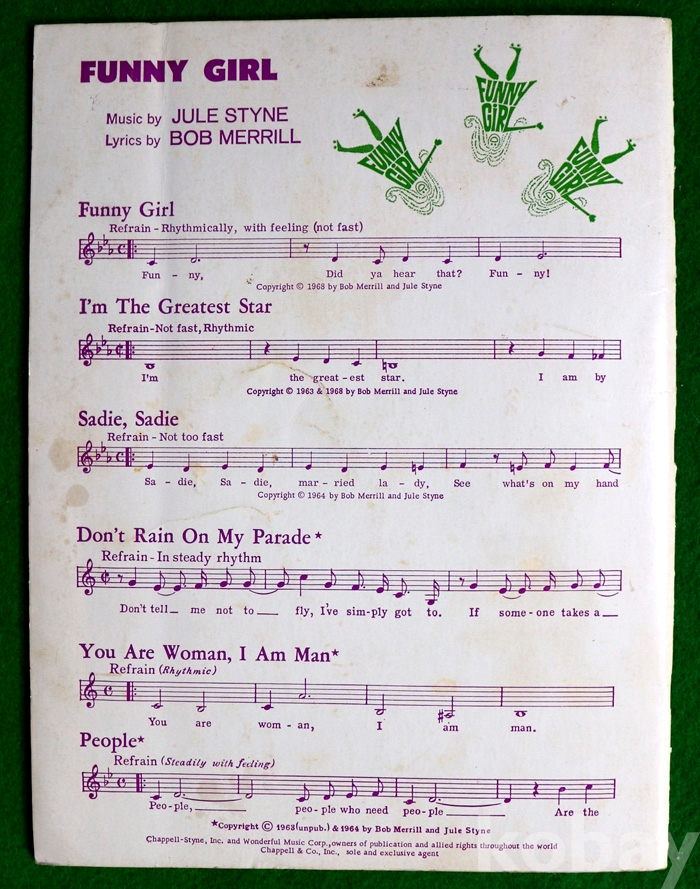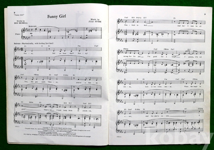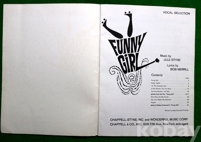 (미국발행 노래책) 'Funny Girl' Vocal Selection - 1968년 발행..