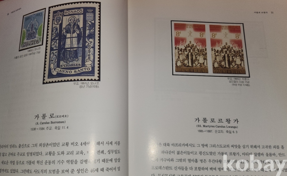1538년 ㅡ1584년 이탈라아 밀라노 출신 가롤로(보로메오) 신부님 우표부터 근 현대의 성지자들의 기념 우표가 총 망라된 매우 귀한 책자입니다,