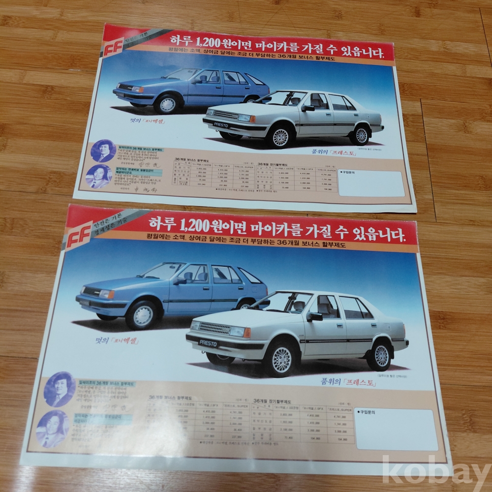 현대자동차 포니엑셀 ㆍ프레스토 홍보포스터 두장일괄 올려드립니다