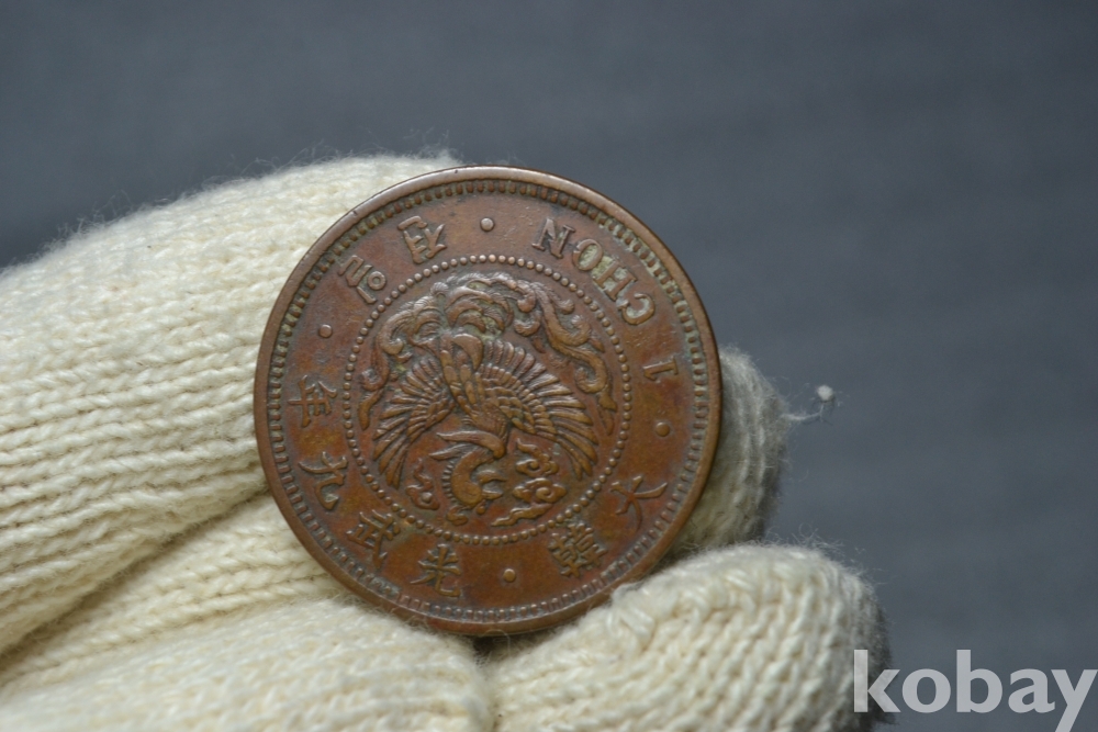 대형 광무10년 주화보다 훨씬 더 잔존량이 적게 발행되어진 귀중한 특년도인 광무9년도 대형 봉황 1전 구한국 근대전 입니다. (사진참조)