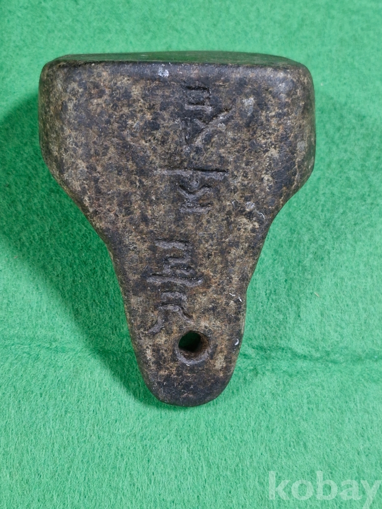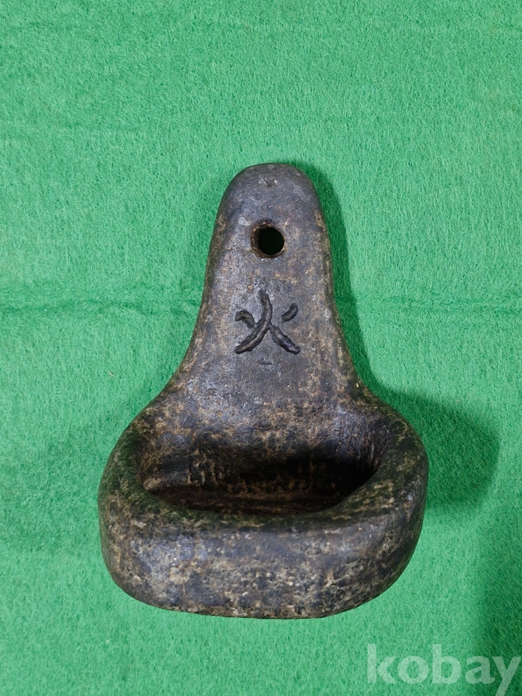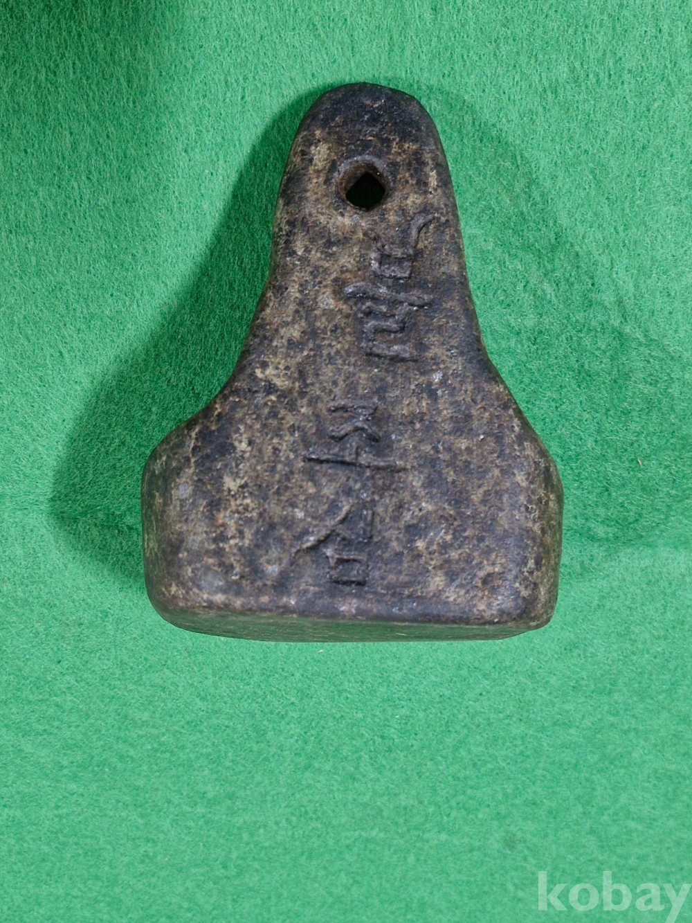 벽에 걸수있도록 꼭지부분에 구멍이있으며 앞면에는 불화자가있고 뒷면에는 불조심이 새겨져 있어요