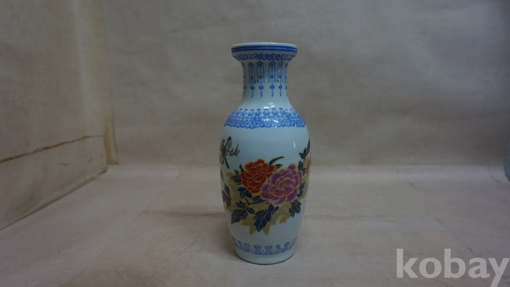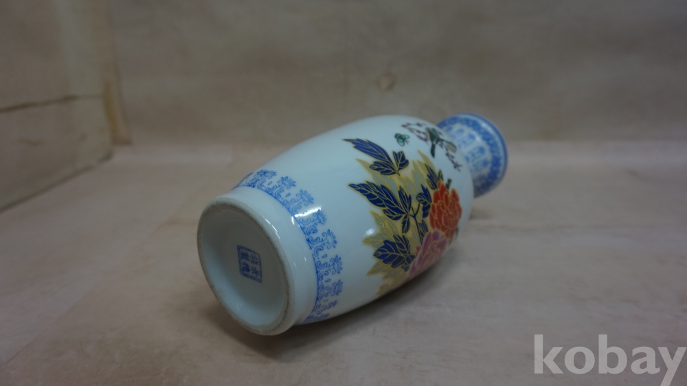 ◈◈백자../채색 진사.모란.화.조.접(나비)문,ㅡ''화병 한점◈◈