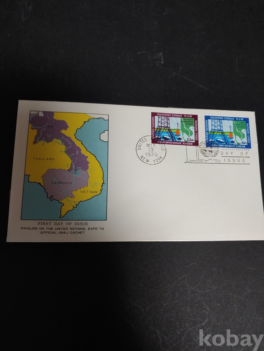 이 초일봉피는 1970년 3월 13일 발행된 유엔 초일 커버로, 일본 오사카에서 열린 엑스포 70