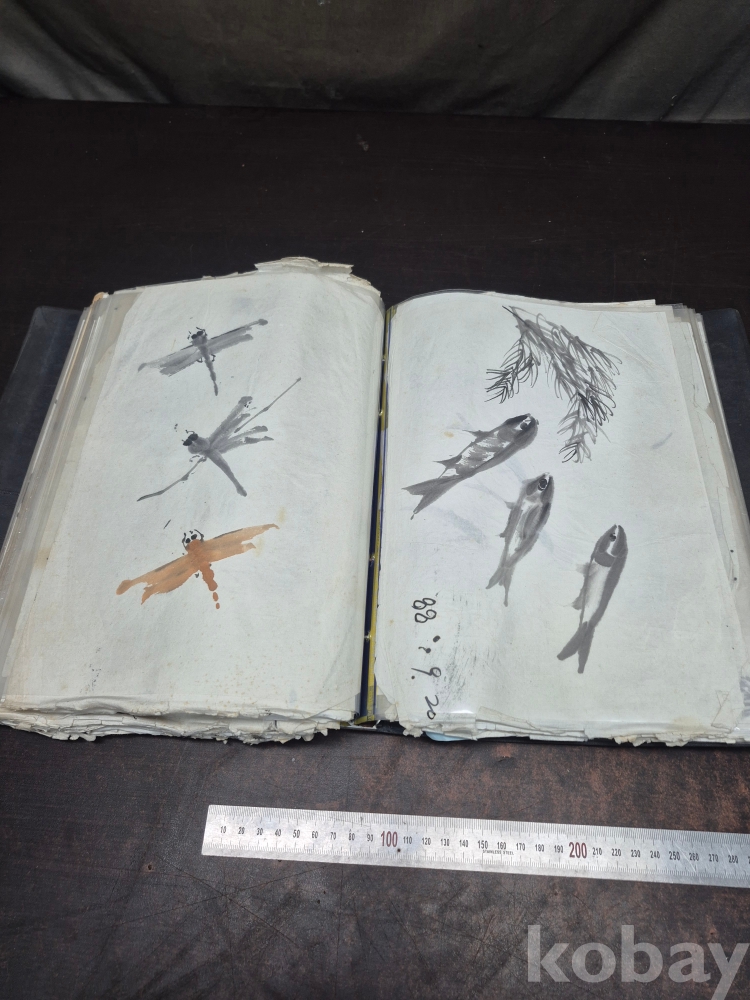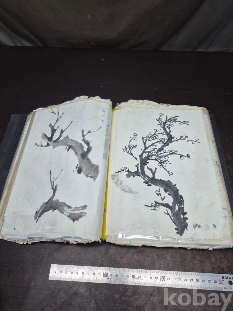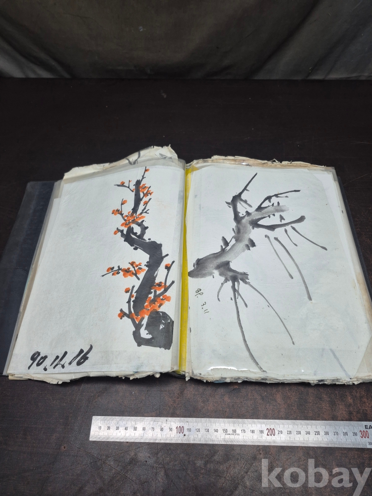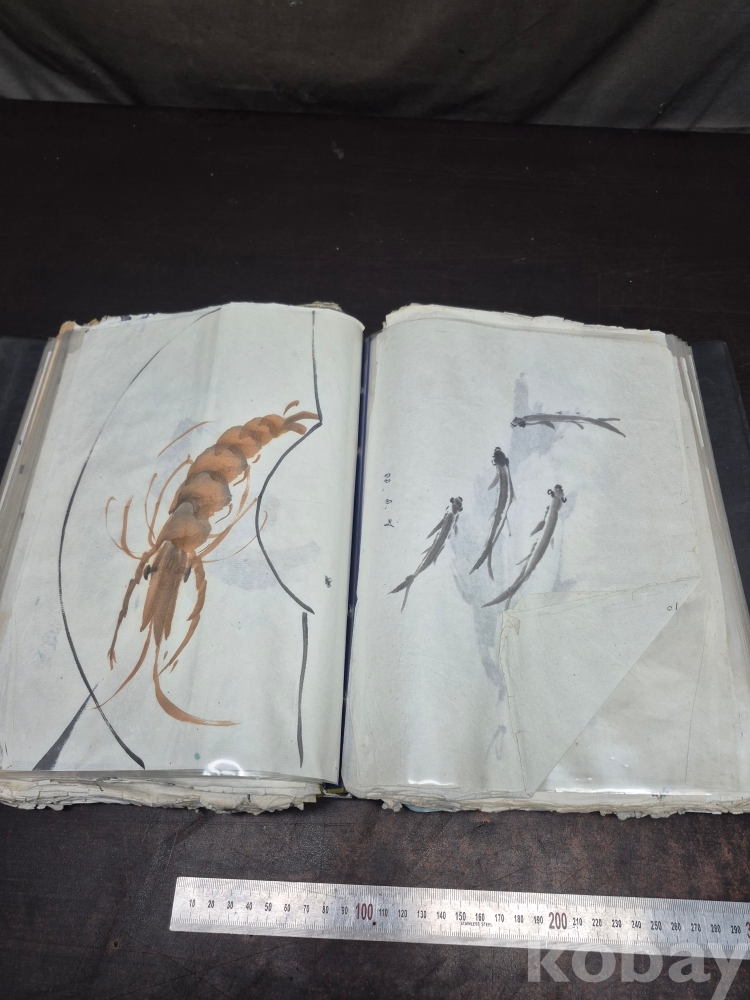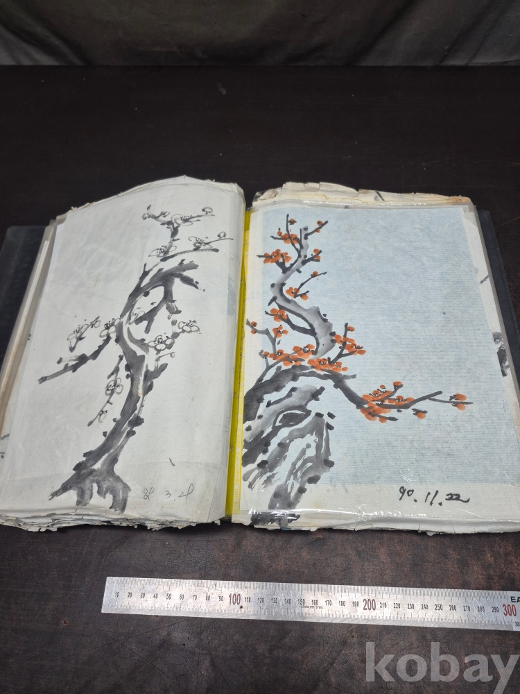 1980년대 한국화 동양화 습작품 다수 클리어 파일에 들어 있어요 25*30*5