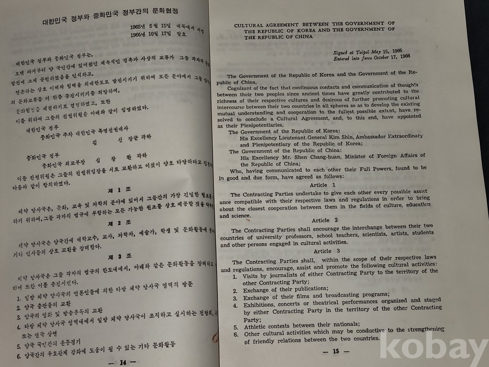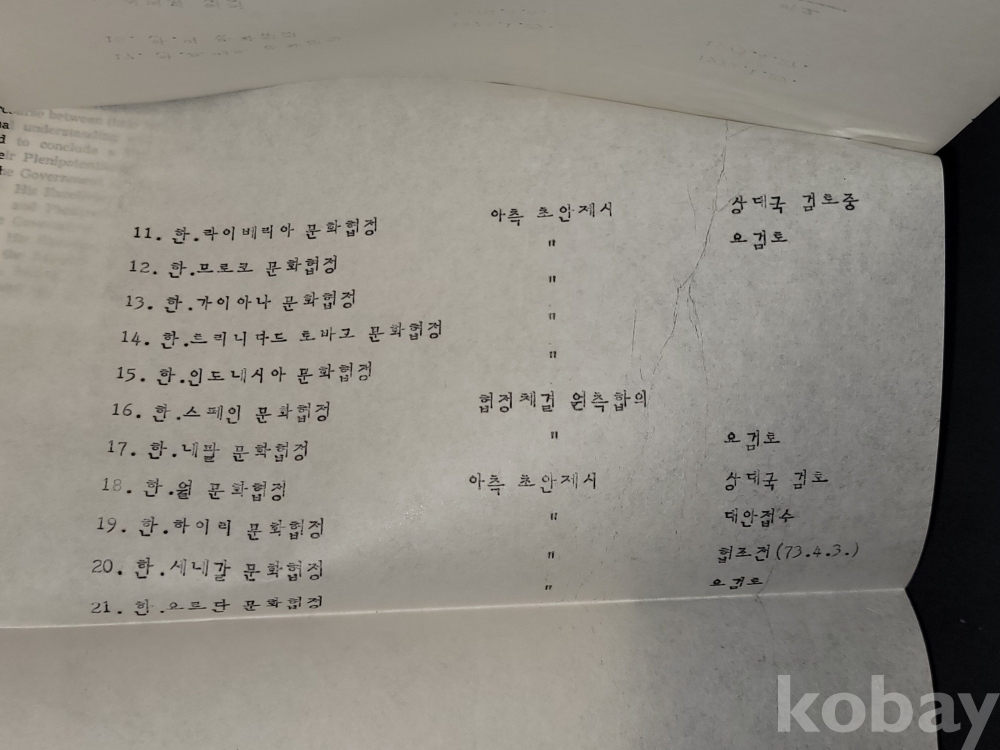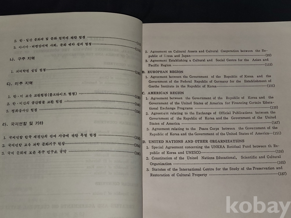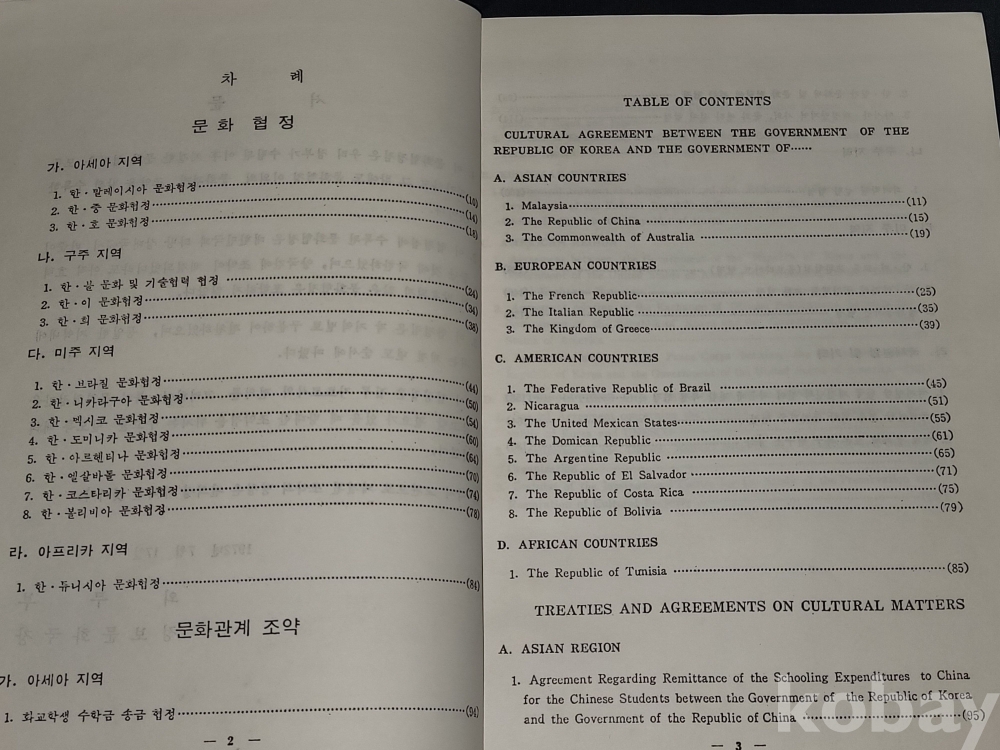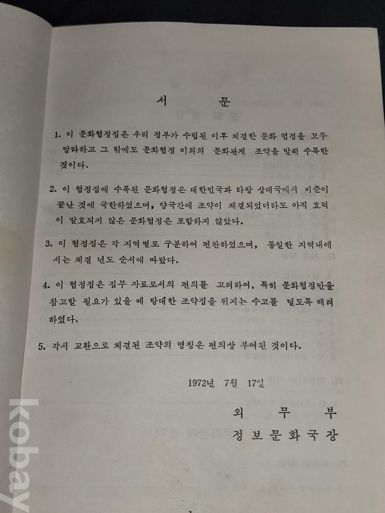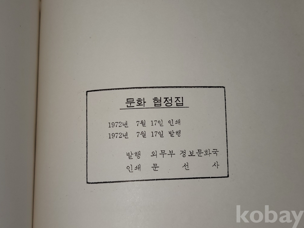 빈티지 세월 감이 느껴지는 희귀한 1972년 외무부 정보문화국 발행 문화 협정집 고서적입니다.