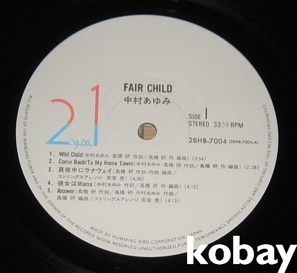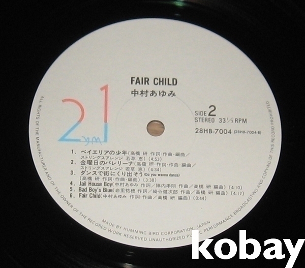 나카무라 아유미 (Ayumi Nakamura ) – Fair Child 앨범 / 4집 LP입니다.(1986년)