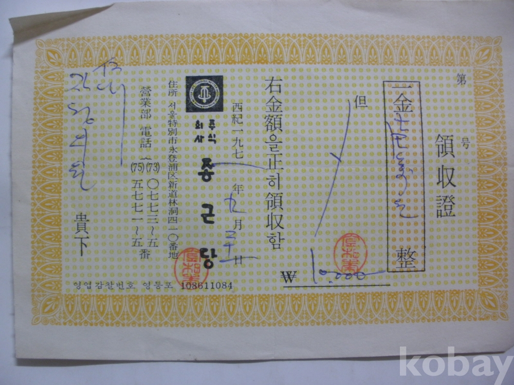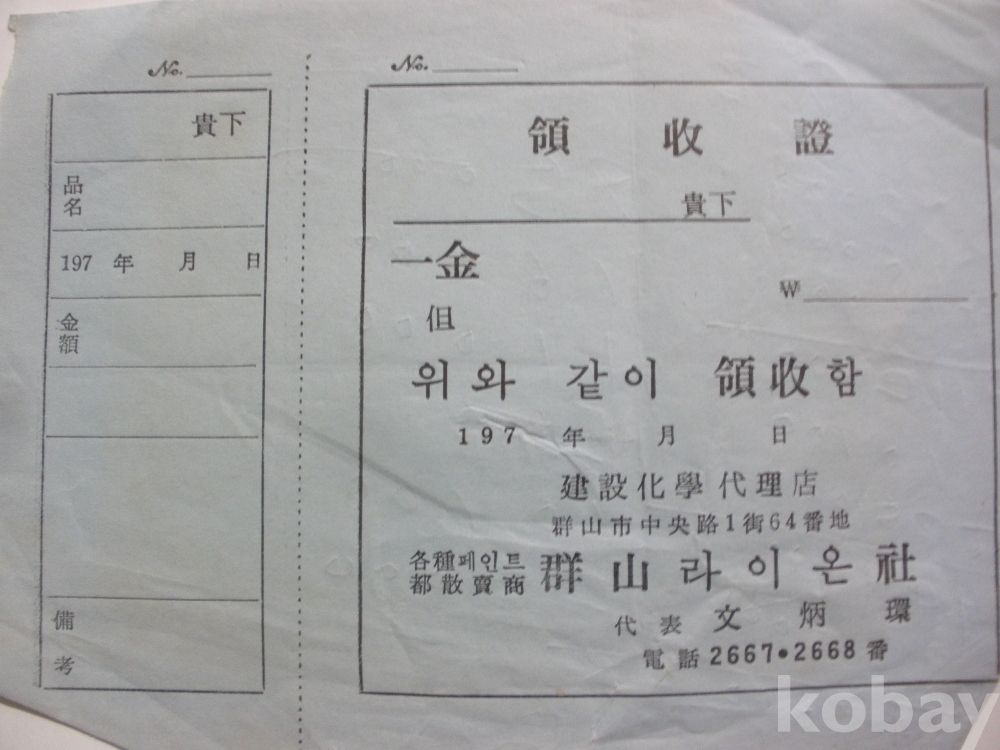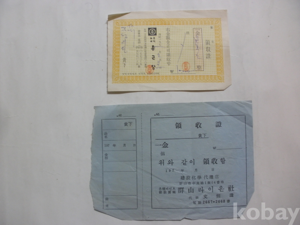 군산 라이온사 등 - 영수증 2매일괄 (1970년대)