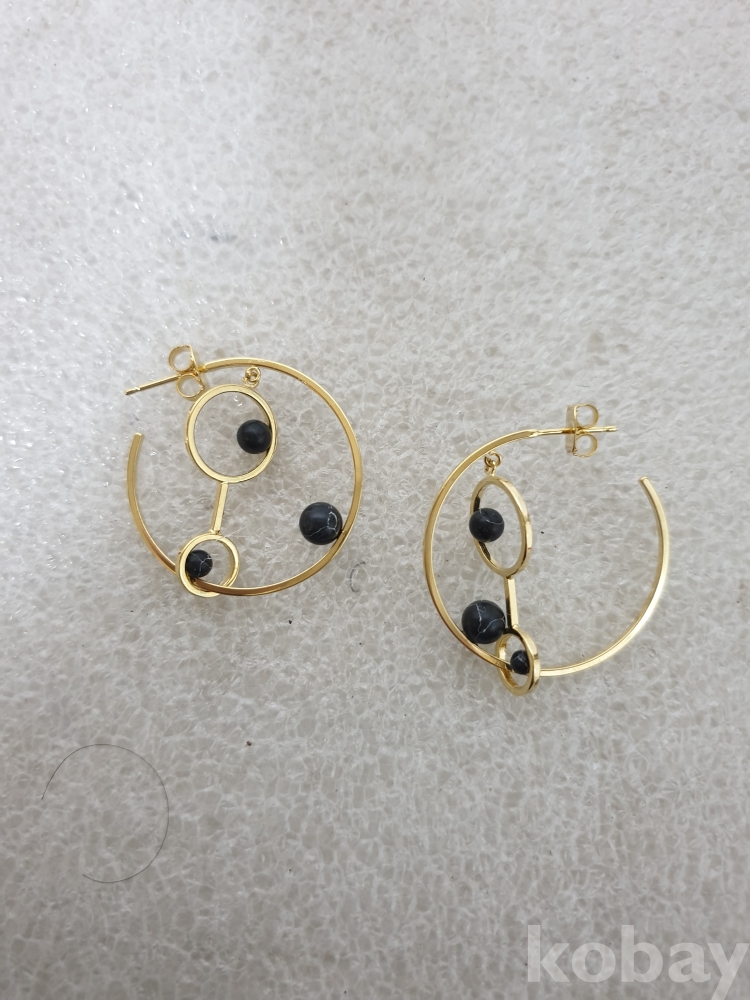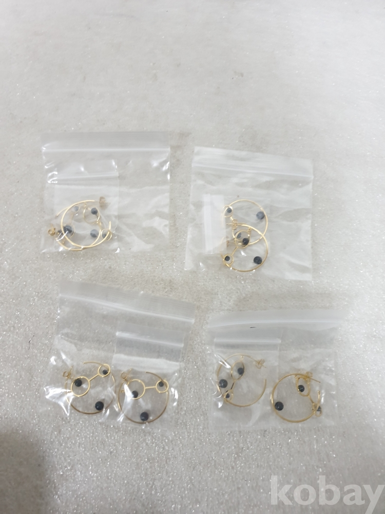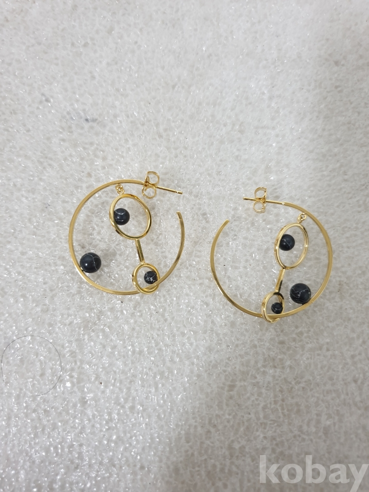 {천원경매} Y-11.2400 검정 원석 원형 귀걸이 4쌍(귀침 925실버)