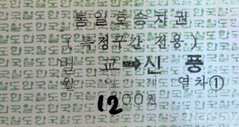 통일호 승차권 특정구간 벌교-신풍 일반입니다.