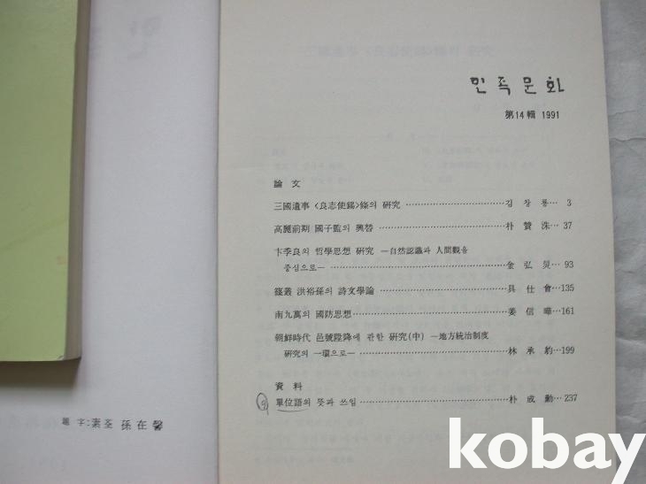 ▒ 1991/1992년 민족문화추진회에서 발행한 학술지 <민족문화> 제14집과 제15집이다. 제호는 소전 손재형의 글씨이다.