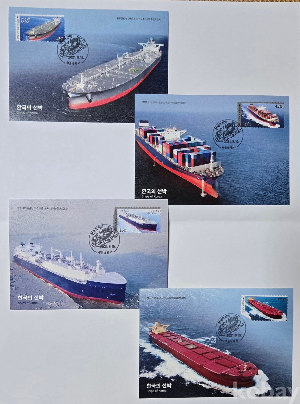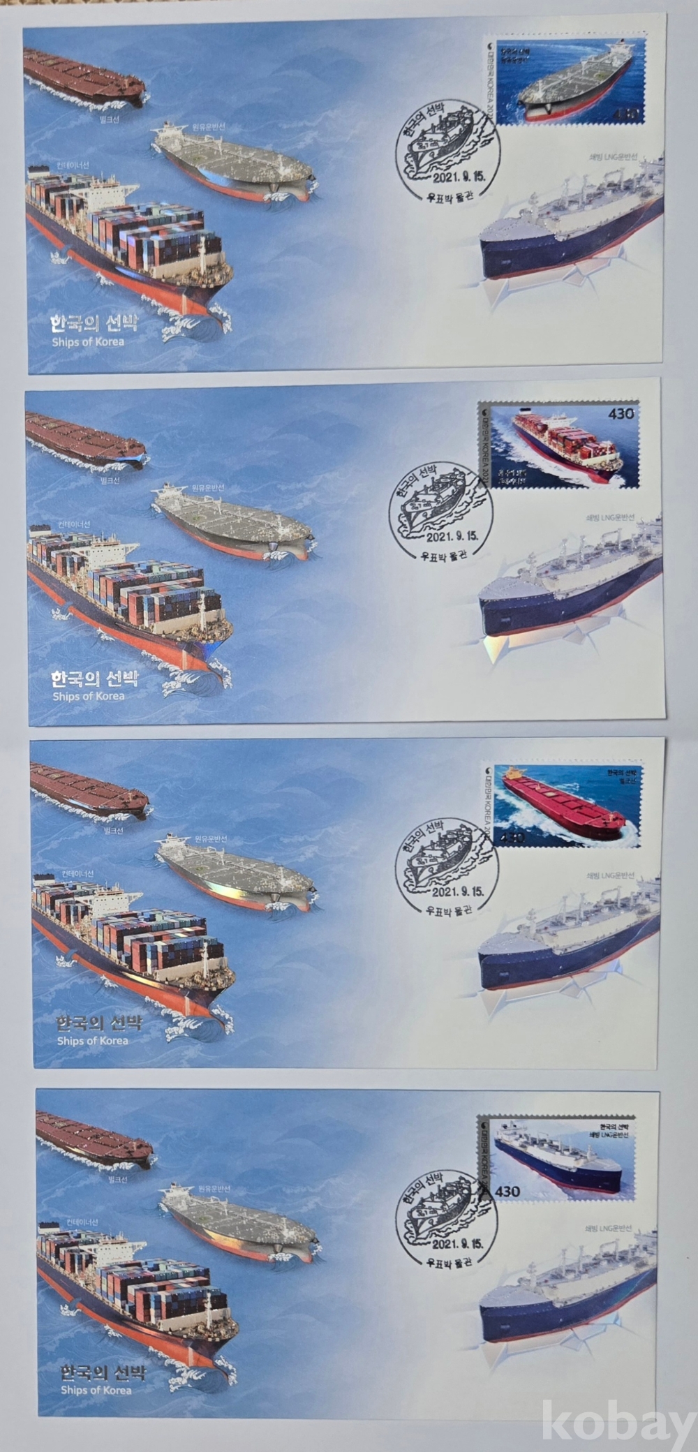 2021년 한국의 선박 박물관 초일봉투 4종입니다.
