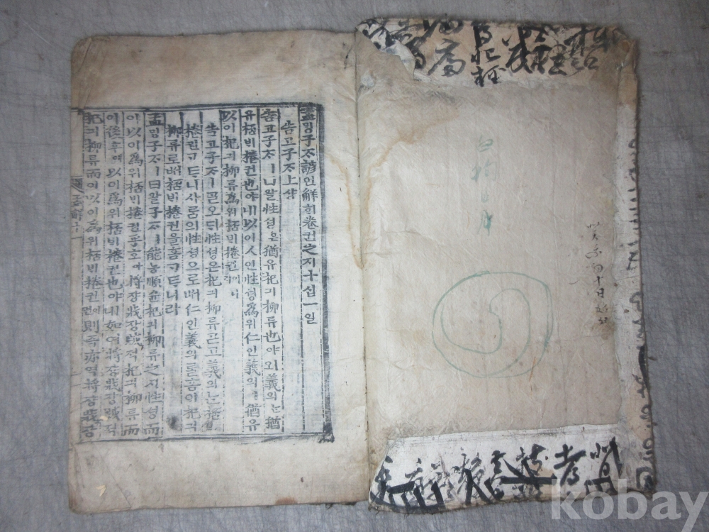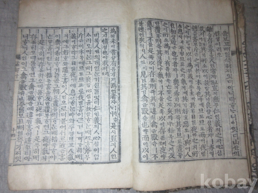 한글이 보이는 오래된 목판본 고서적 맹자 언해본입니다.