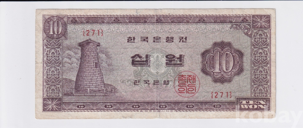- 한국은행 무년도 첨성대 십원 판번호 271번 사용제 지폐