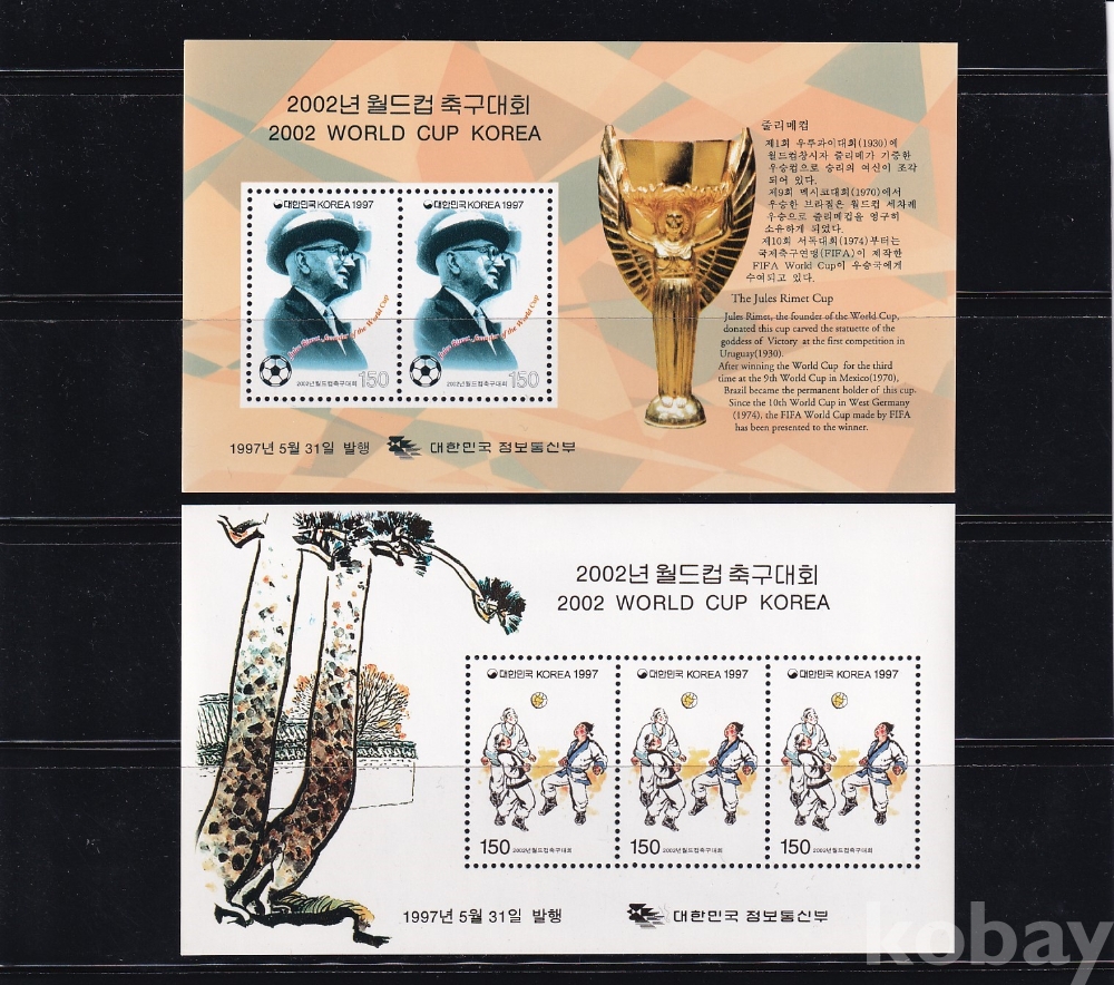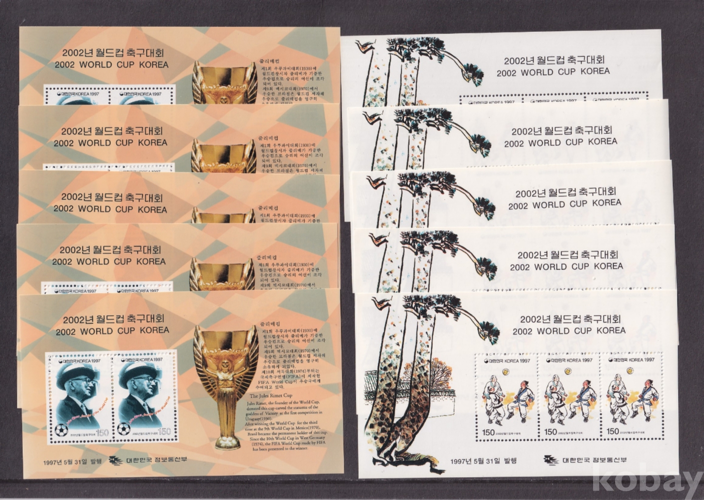 - 미사용 2002년 월드컵 축구대회 시트 2종 10장 일괄 - 1997년 발행