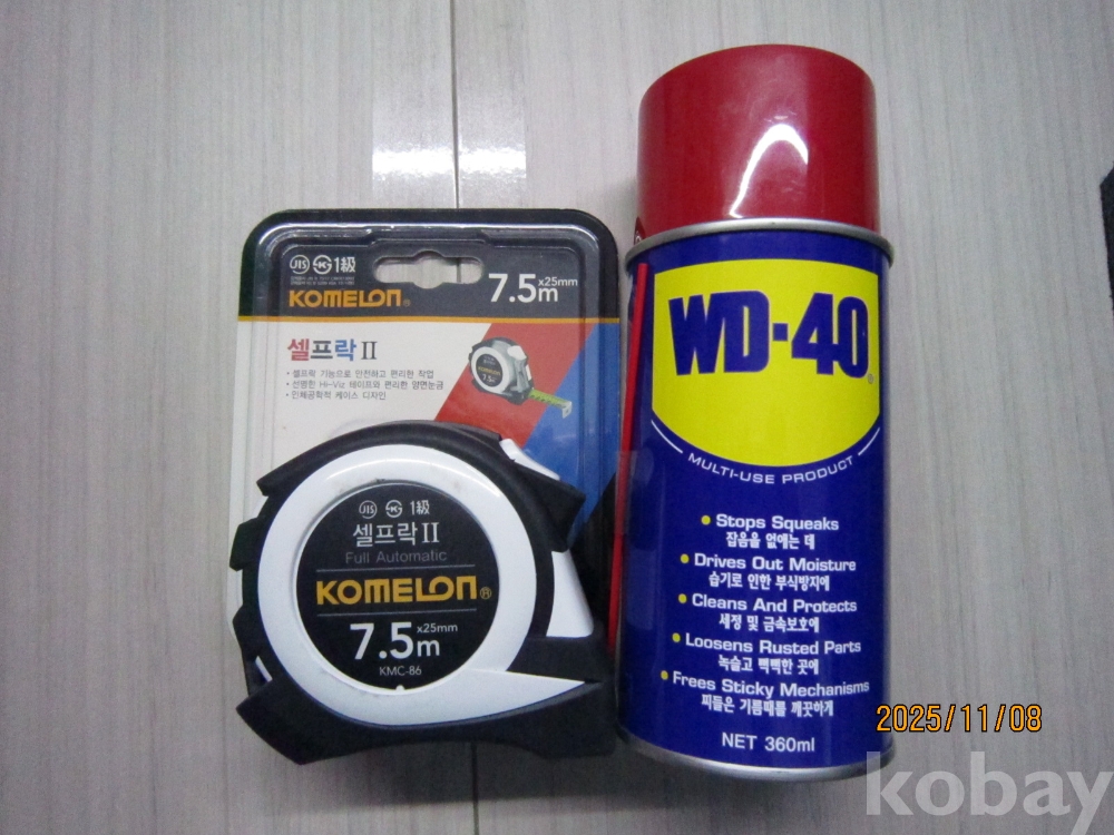 미사용 코메론 7.5m 줄자와 미사용 WD-40 한개 입니다.