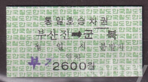 - 미사용 통일호 승차권 " 부산진 ▶ 군복 " 2600원
