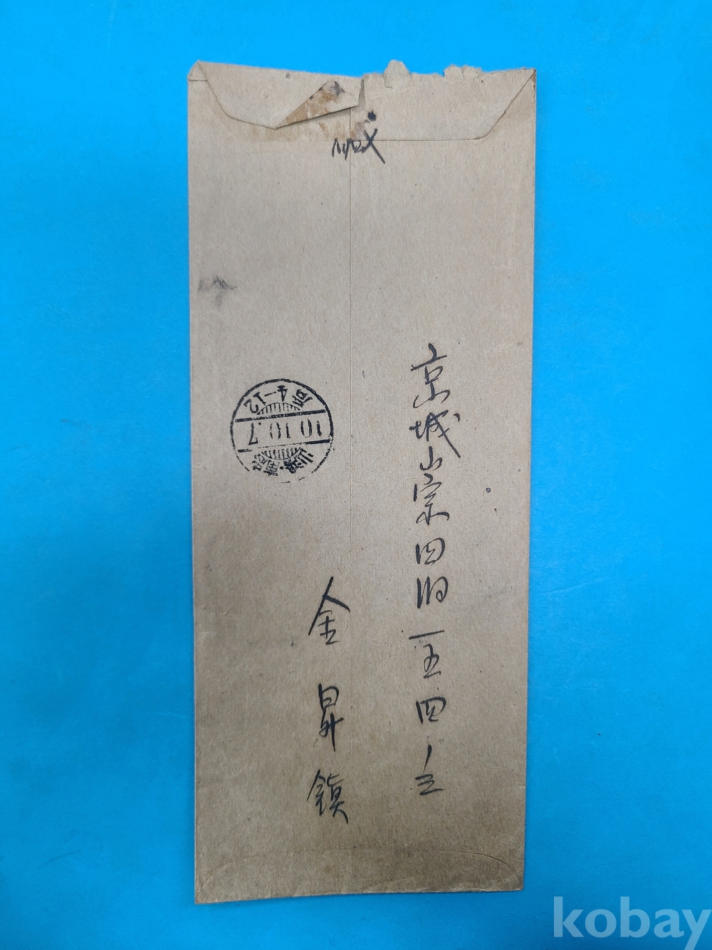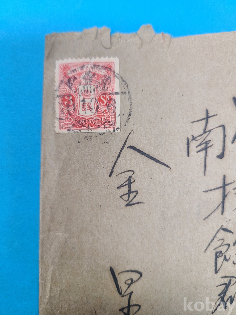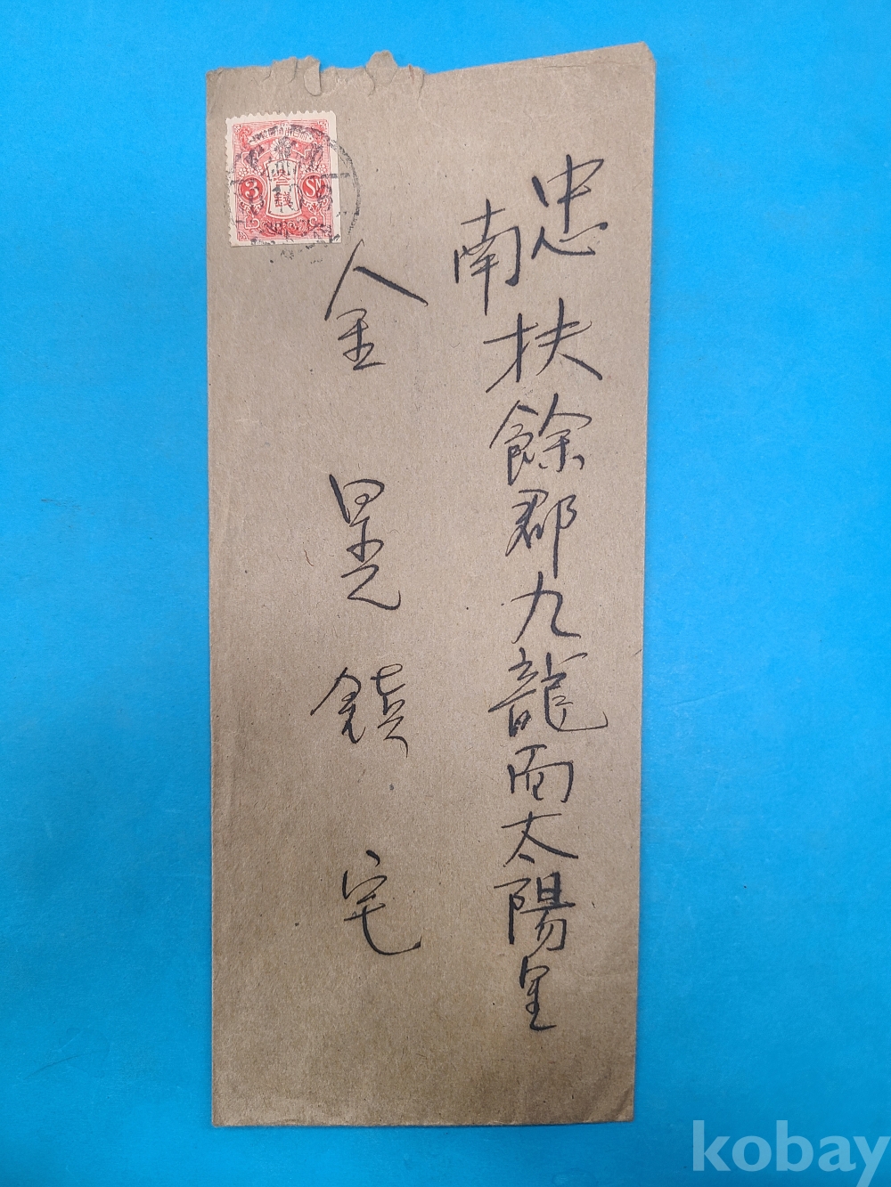 일제강점기 3전 단첩 경성부→ 부여군 구룡면 실체봉투/도착인