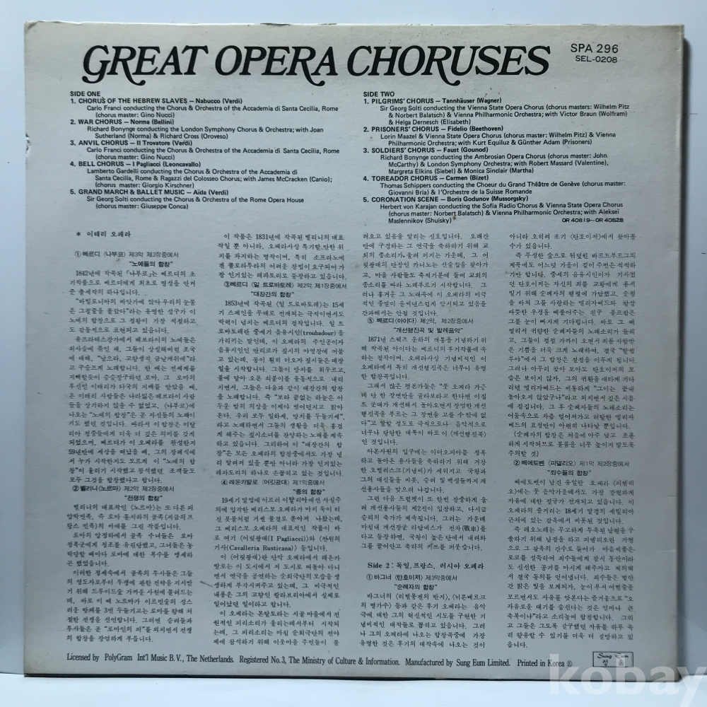 LP 36,350-100 Great Opera Choruses . 74 성음 자켓 EX+ 알판 EX+