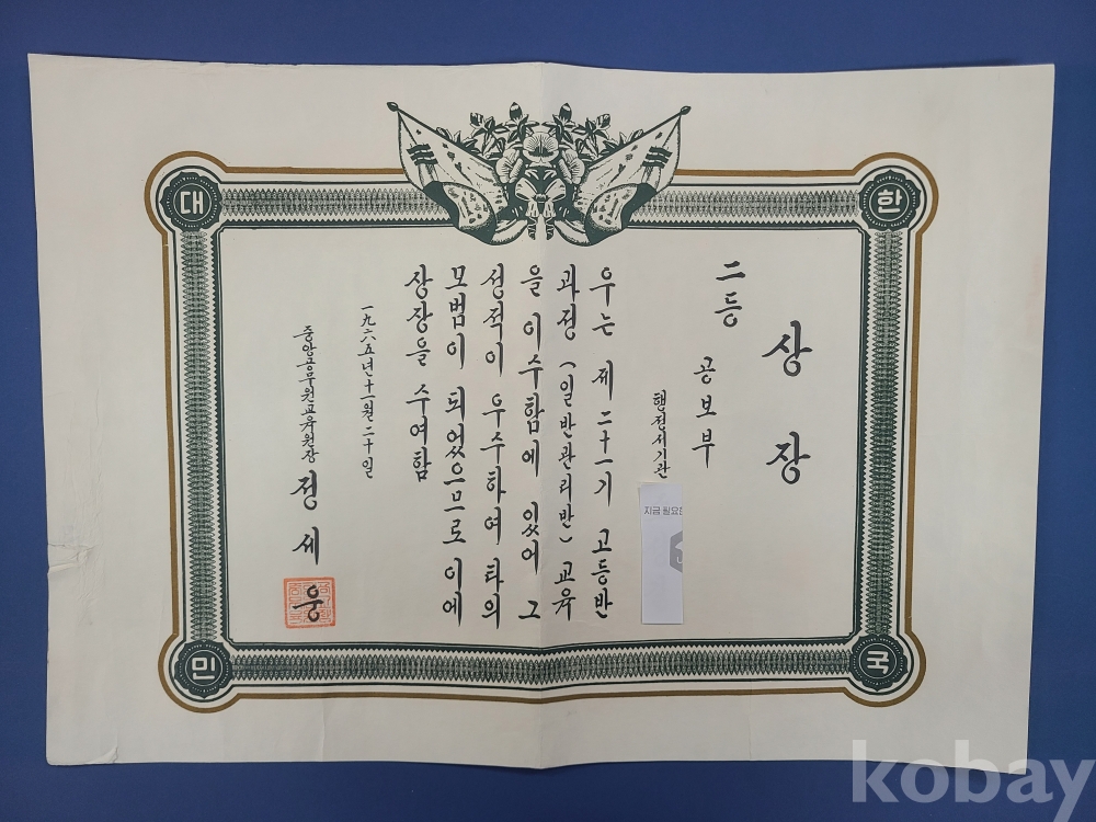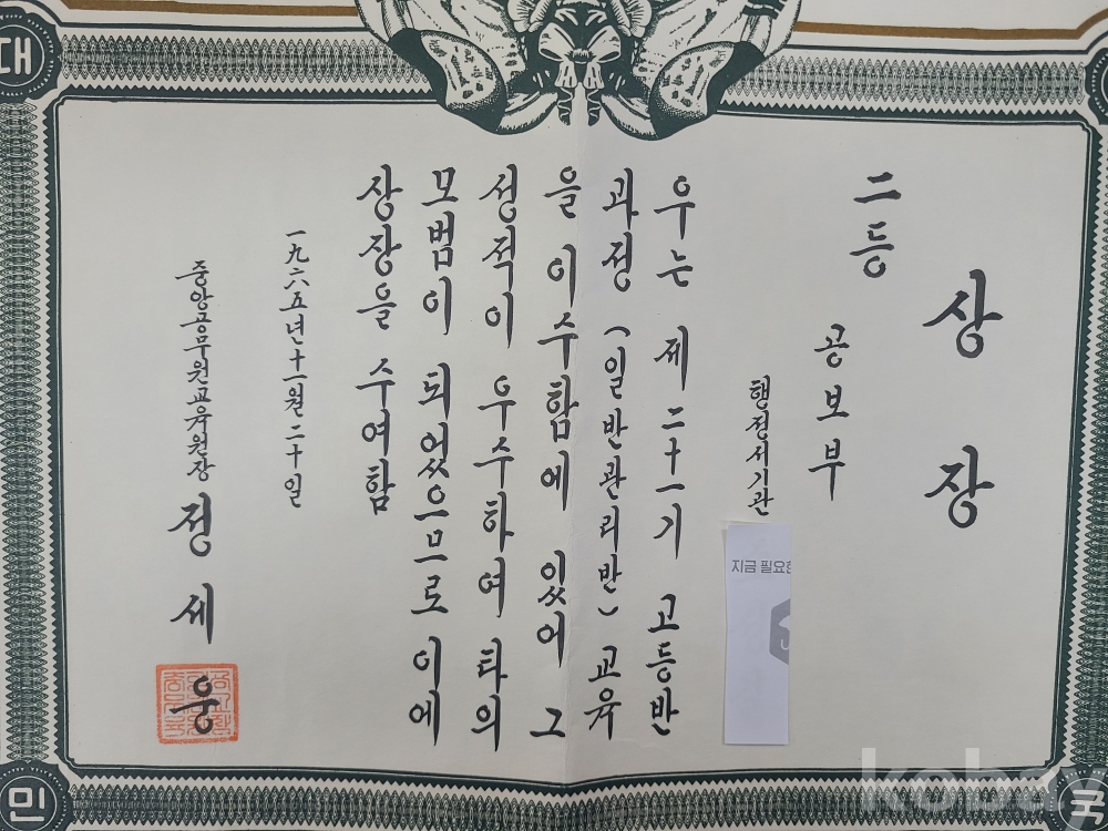 ▶ 1965년 중앙공무원교육원 상장(공보부 행정서기관)/50*38cm