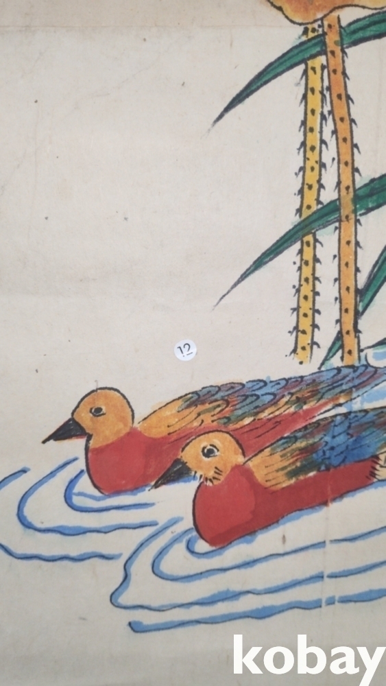 종이에 채색된 연꽃과 원앙 그림입니다,