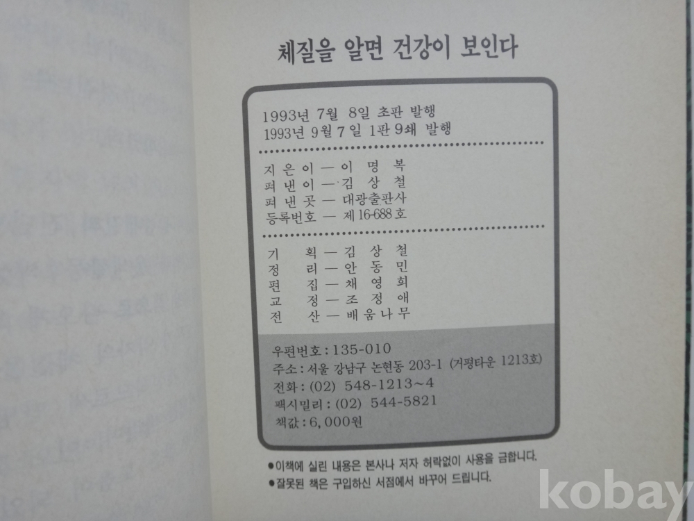체질을 알면 건강이 보인다 - 2권일괄 (1993년, 이명복 저, 대광출판사)