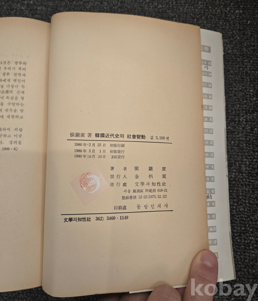 [한국근대사, 광무개혁, 농지개혁] 신용하, <한국근대사와 사회변동>, 문학과지성사, 1980, p. 362, 상태 중하급(필기있음, 사진참조)