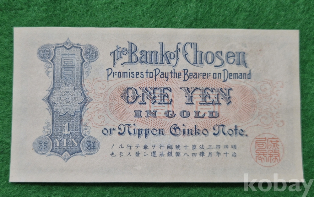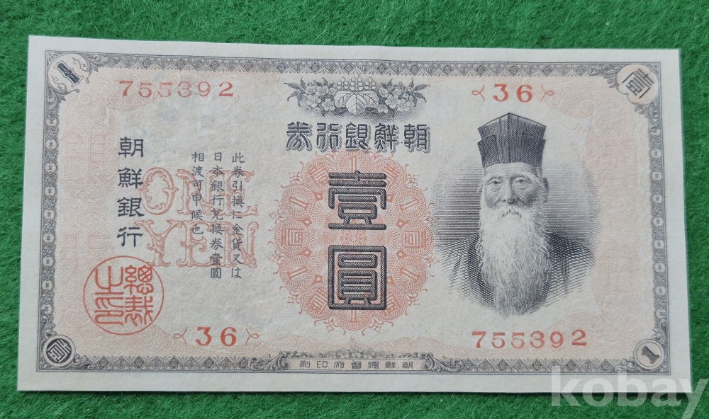 조선은행 1원권으로 조선총독부 인쇄국에서 인쇄한 희귀 지폐