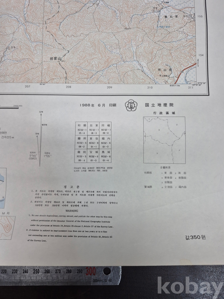 | 1988년 6월 전라남도 화순군 동염 남면 지도 1:25000 지도 54*80 |