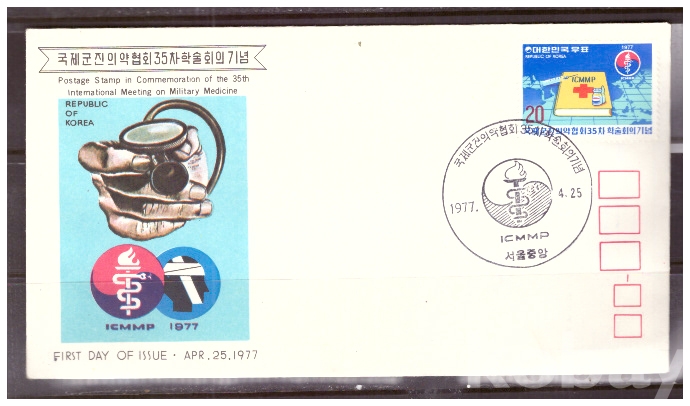 (초일봉피) 1977.4.25 국제군진의약협화 35차 학술회의 FDC (서울중앙)