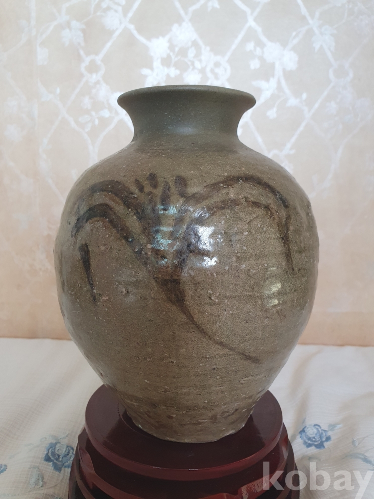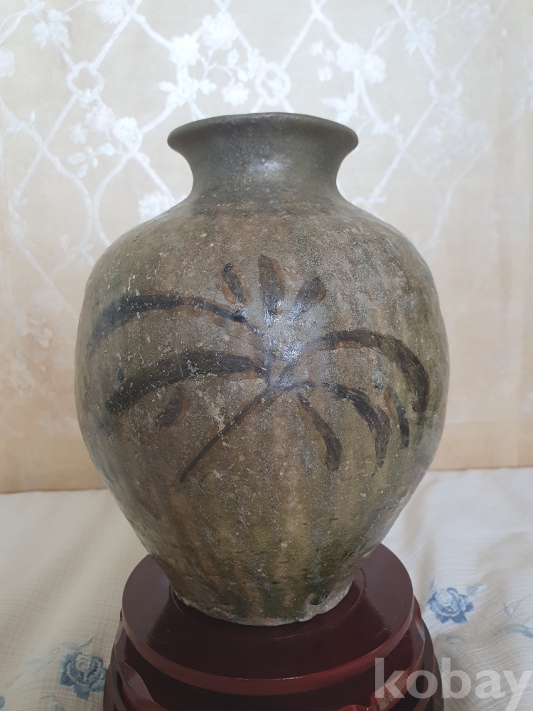 큼직한 고려 회청자 철화 난초문 호 입니다.