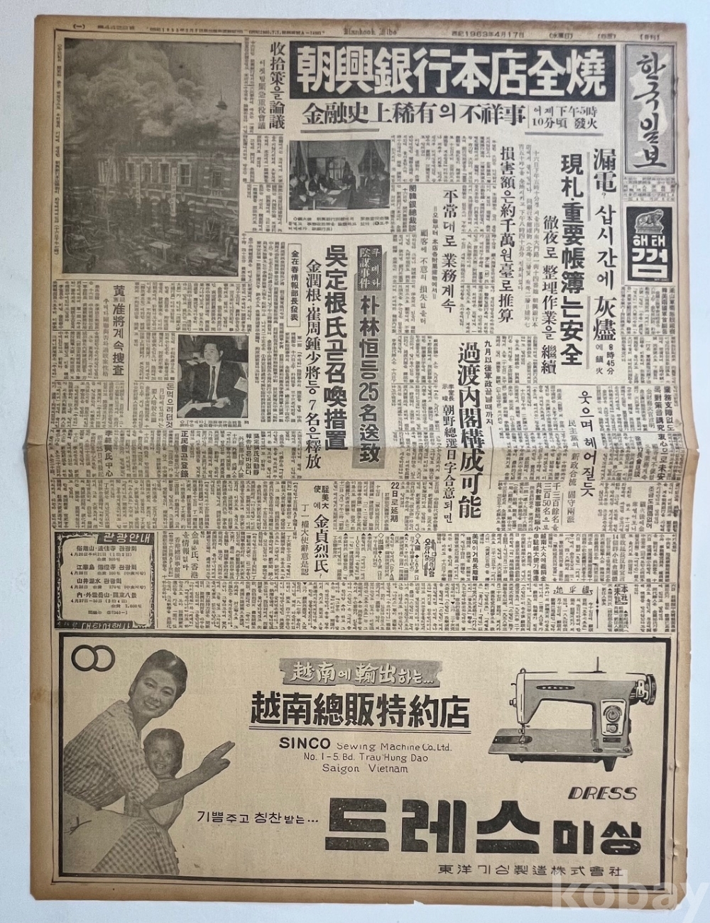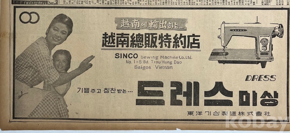 드레스 미싱 광고가 실린 1963년 한국일보 낱장입니다.