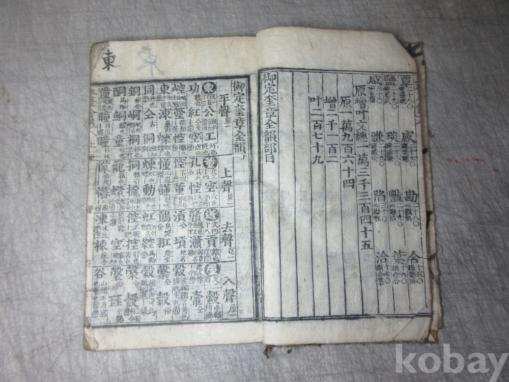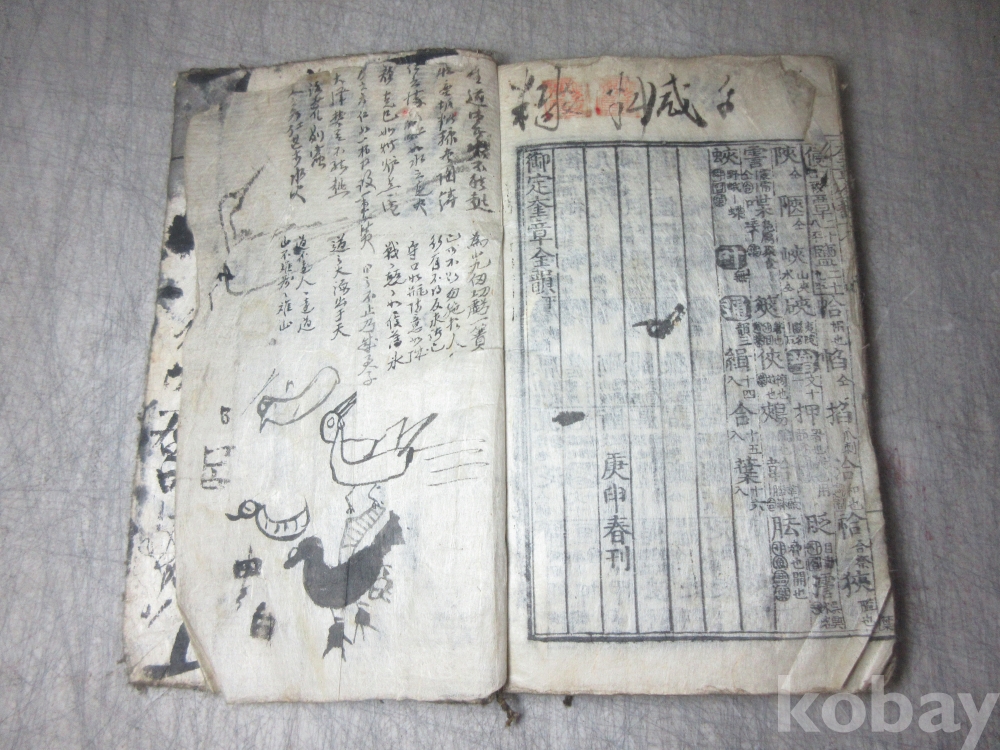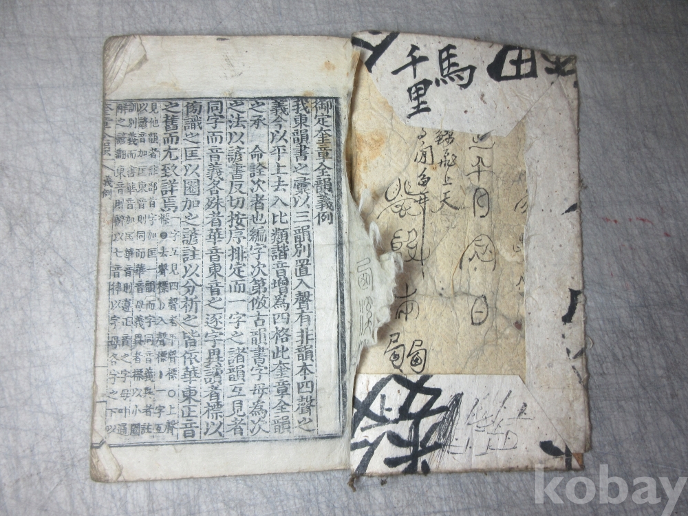 한글이 보이는 오래된 목판본 고서적 어정규장전운입니다.