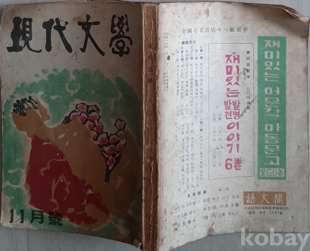(별도)현대문학1962년11월호 NO95 표지 장우성