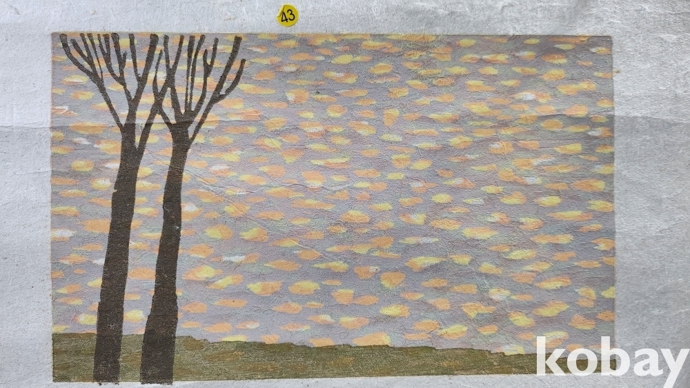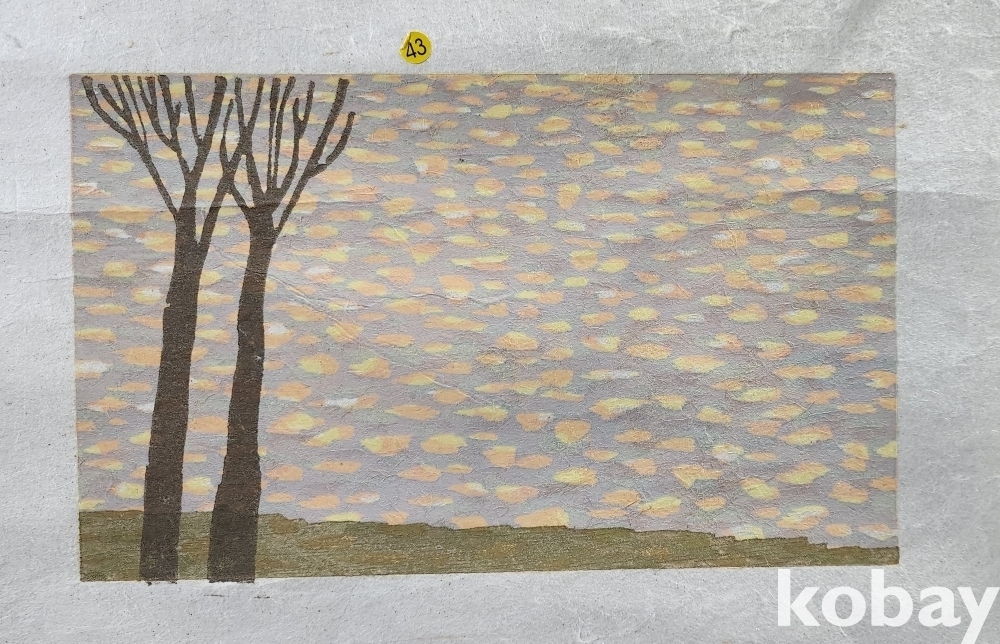 작가 수결과 에디션 넘버가 없는 두터운 한지에 판화입니다,