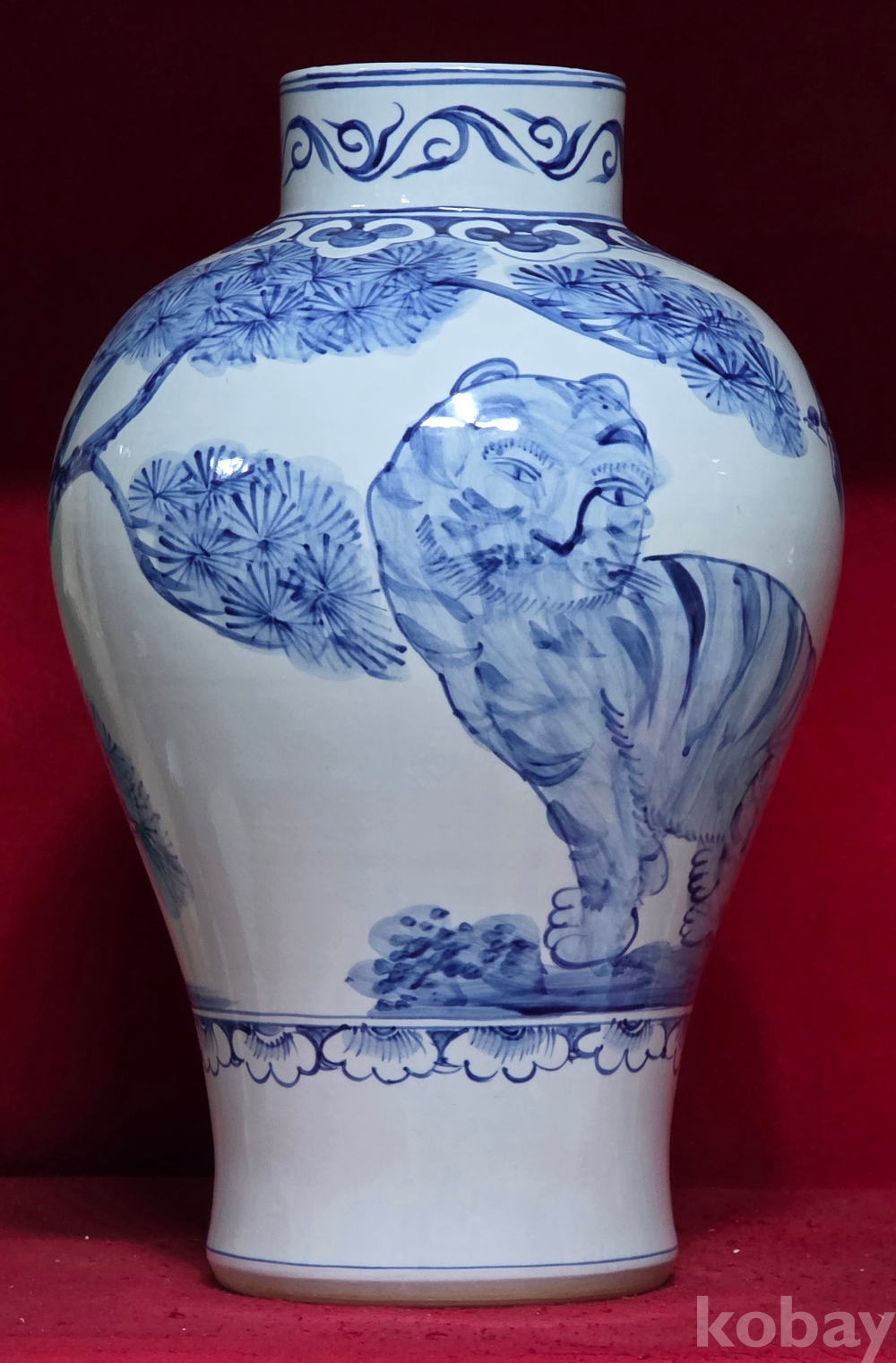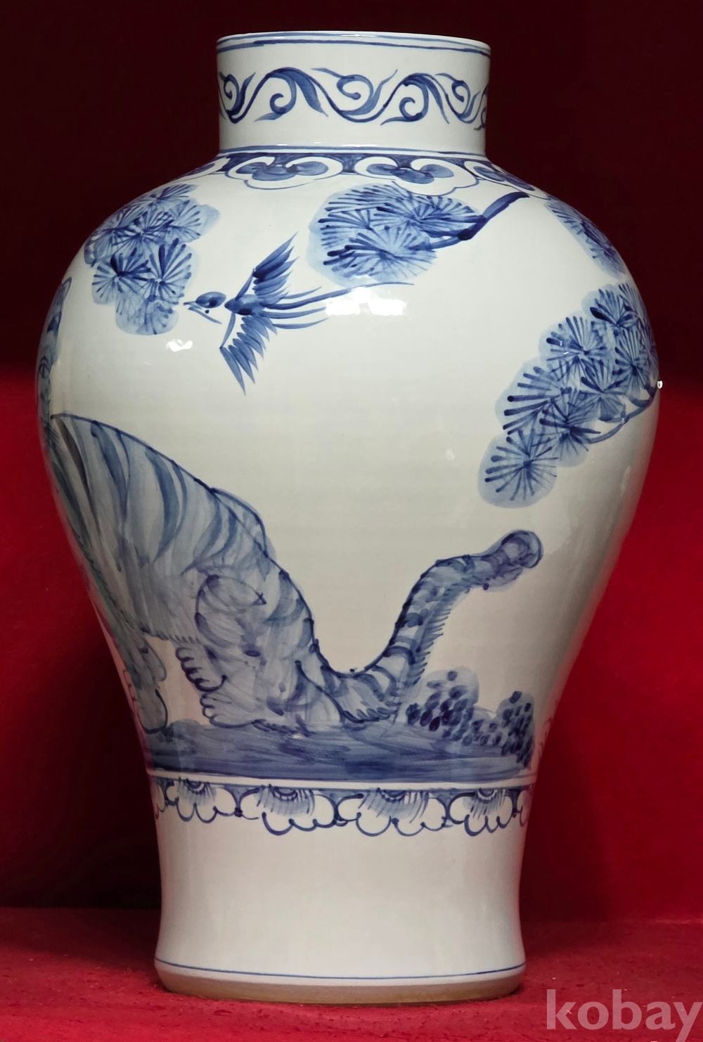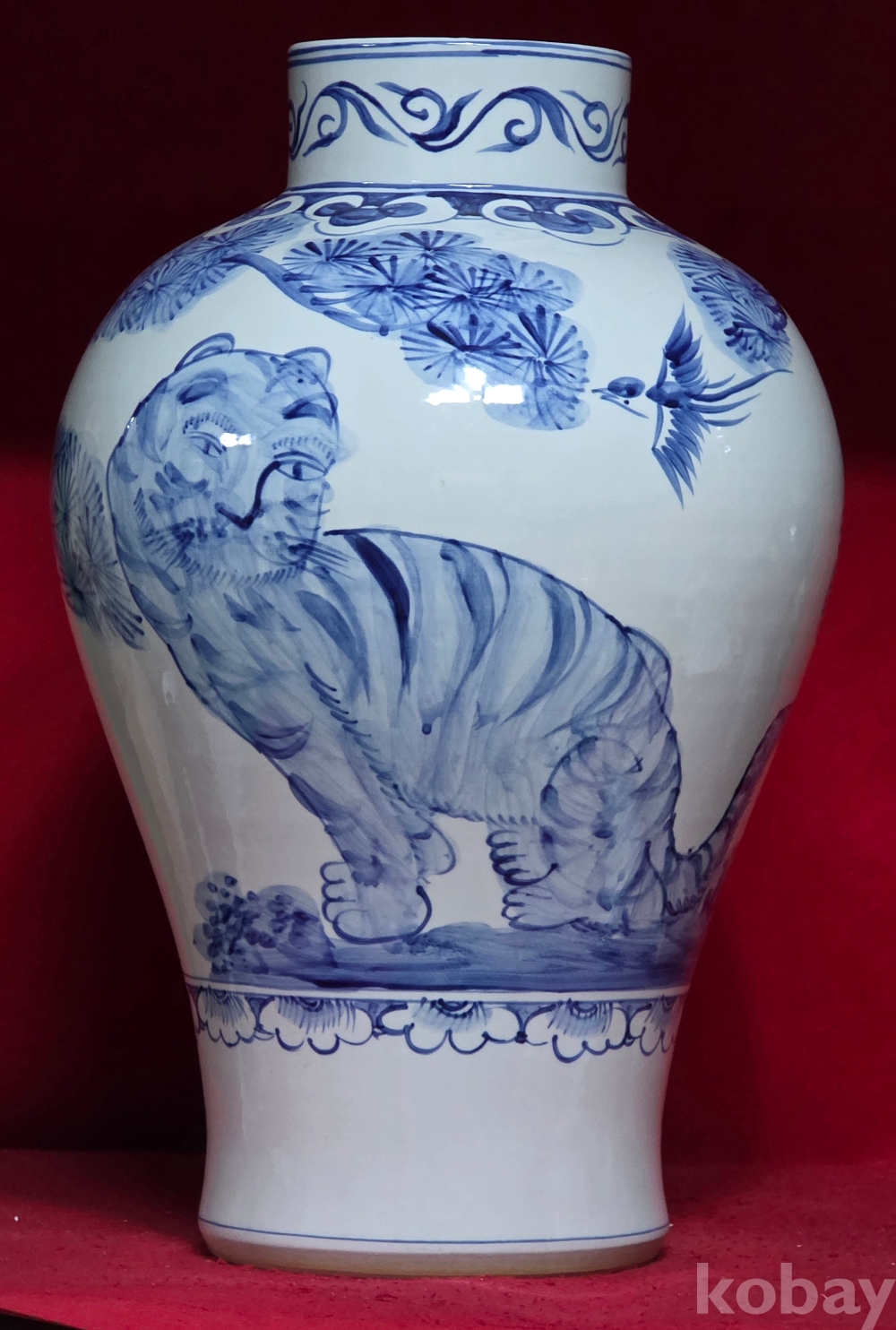 작품성이 뛰어난 청화백자 까치 호랑이 충 초대형 입니다