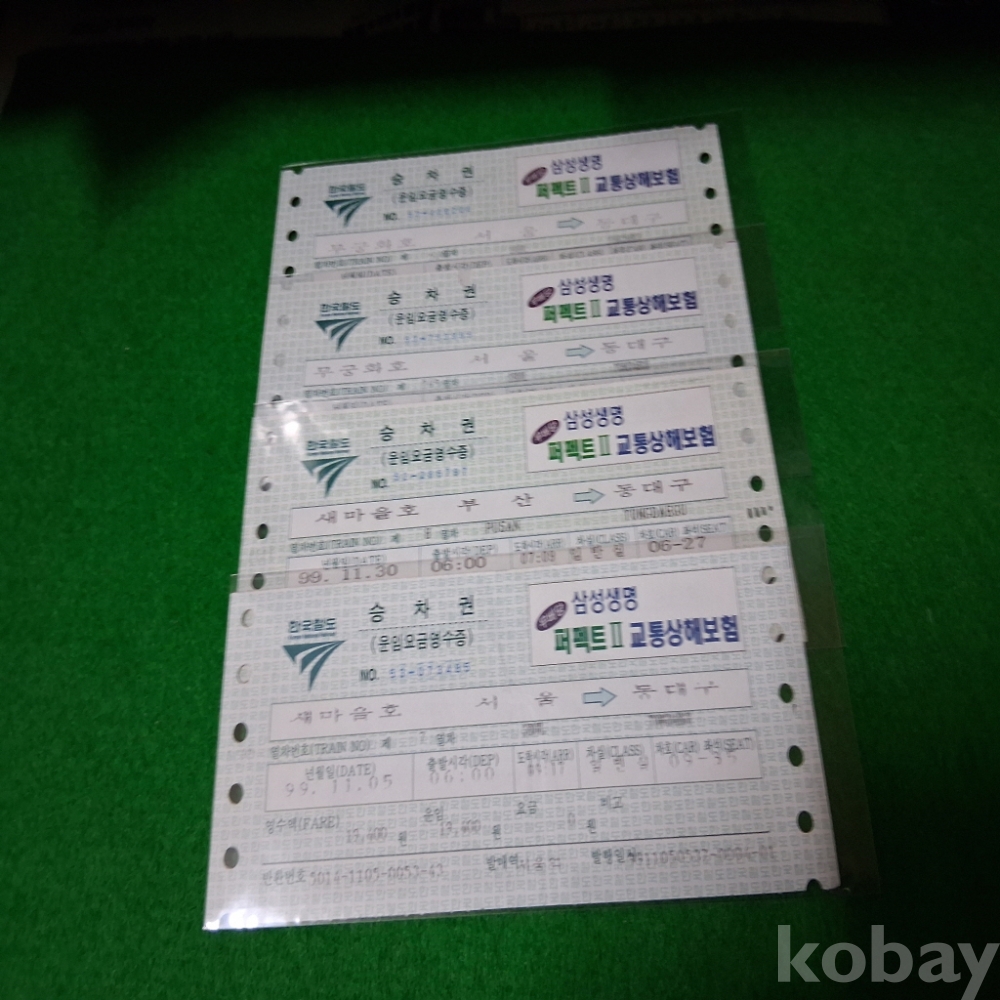 한국철도 광고새마을,무궁화,승차권 각2매 사용제